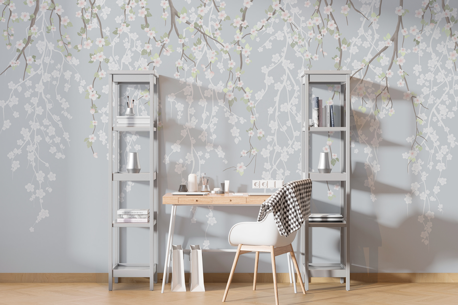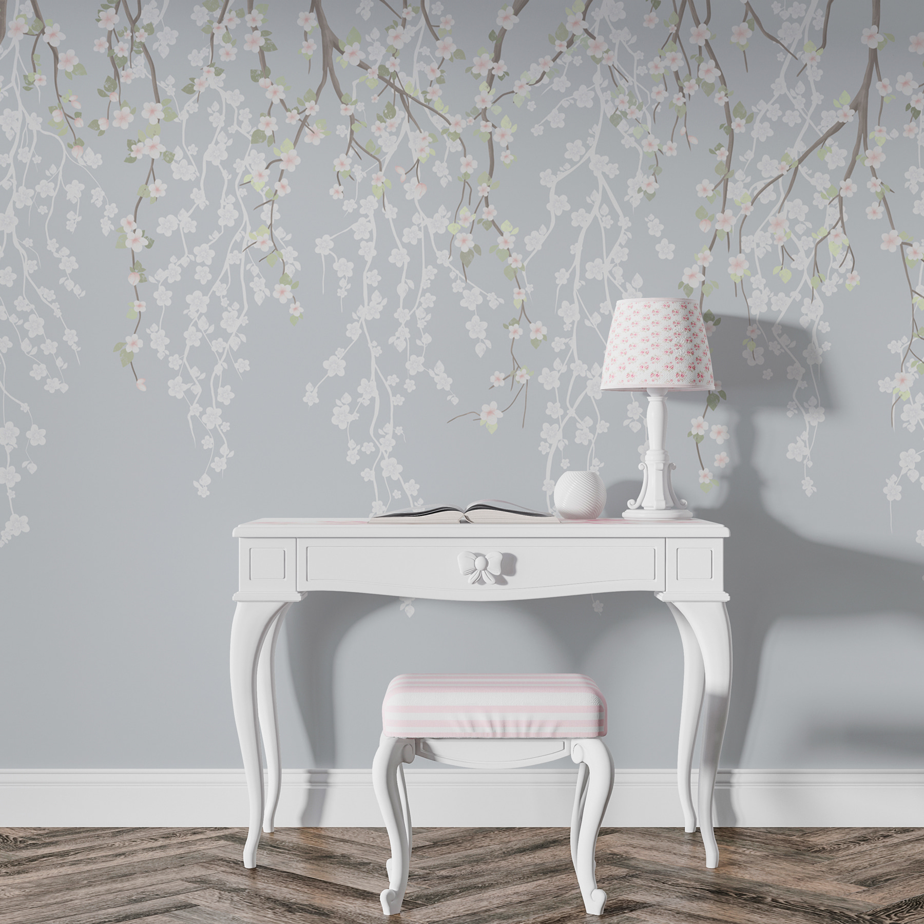 Transforme cualquier habitación en un refugio de serenidad con este encantador mural de pared con delicadas flores blancas que caen en cascada desde las ramas de los árboles. Imagínese entrar en un espacio que al instante parece un tranquilo jardín japonés, ¡sin necesidad de guantes de jardinería! Este mural lleva la belleza de la naturaleza al interior, creando un telón de fondo relajante perfecto para descansar o inspirar la creatividad. La paleta de colores suaves invita a la tranquilidad, por lo que es difícil no recostarse y soñar despierto. Perfecto para salones, dormitorios o ese rincón acogedor donde florecen las mejores ideas de la vida. Es como tener un trozo de naturaleza en casa, ¡sin el molesto polen!