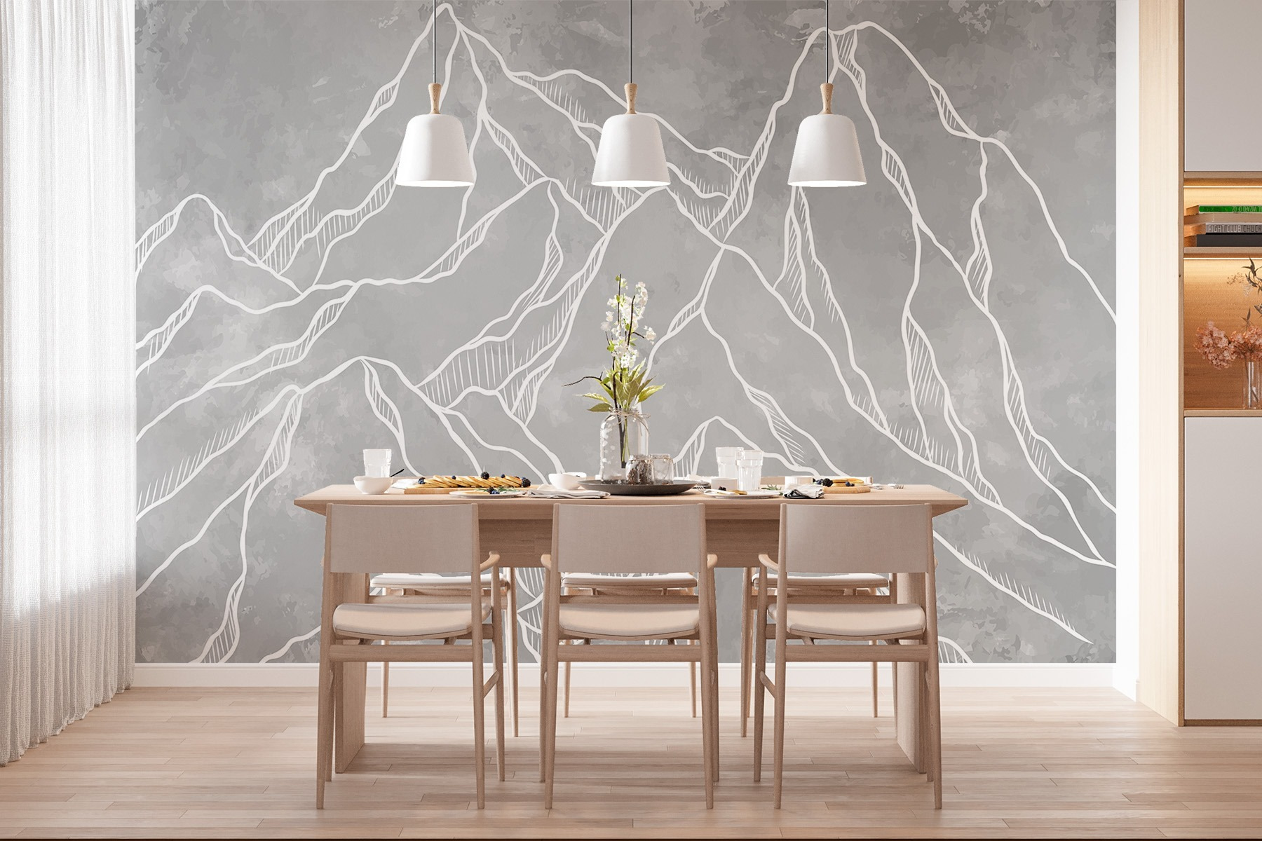 Imagine entrar en una habitación y sentir que acaba de entrar en una serena cadena montañosa. Este mural de pared, con su elegante y abstracto contorno de picos, aporta un aire de tranquilidad a cualquier espacio. Perfecto para crear un telón de fondo relajante en un dormitorio o añadir un poco de estilo a una acogedora sala de estar, invita a soñar despierto con excursiones por la montaña y brisas frescas. Los suaves grises y blancos combinan armoniosamente con cualquier decoración, por lo que es versátil y deslumbrante. Es como tener un trozo de naturaleza en la pared, ¿quién no querría eso? El mural susurra aventura a la vez que transmite tranquilidad a la habitación. Perfecto para quienes buscan una mezcla de creatividad y calma. ¿Qué más se puede pedir?