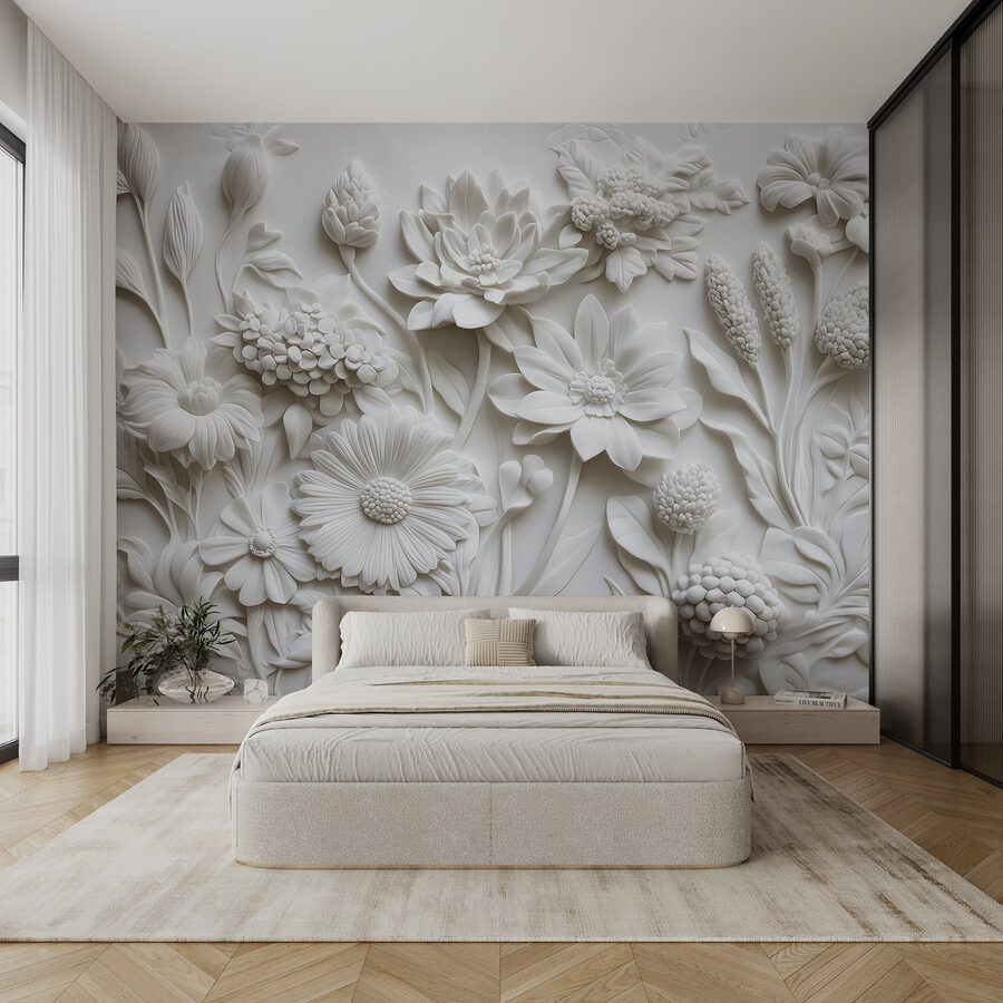 Transforme cualquier habitación en una escapada serena con este encantador mural de pared que presenta una impresionante escultura de flores blancas. No es sólo arte, es como respirar aire fresco en una mañana de primavera. Imagínese entrar en un espacio donde las flores florecen eternamente, sus elegantes formas invitan a la calidez. Cada pétalo parece susurrar historias de la tranquila belleza de la naturaleza, evocando recuerdos de jardines iluminados por el sol y suaves brisas. Este mural, perfecto para aportar paz a un dormitorio o a un rincón acogedor, envuelve las paredes en un abrazo de elegancia sin complicaciones. Sus amigos le preguntarán de dónde ha salido este precioso telón de fondo, ¡imagínese las sonrisas!