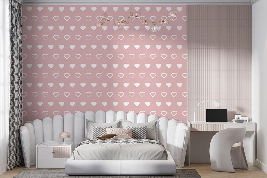 Alegre cualquier espacio con este encantador mural de pared que presenta un encantador patrón de corazones blancos sobre un alegre fondo rosa. Imagínese entrar en una habitación que al instante se siente como un abrazo acogedor, ¡este mural hace exactamente eso! Es perfecto para una habitación infantil, una sala de estar alegre o incluso una oficina elegante donde desee un toque de felicidad.
