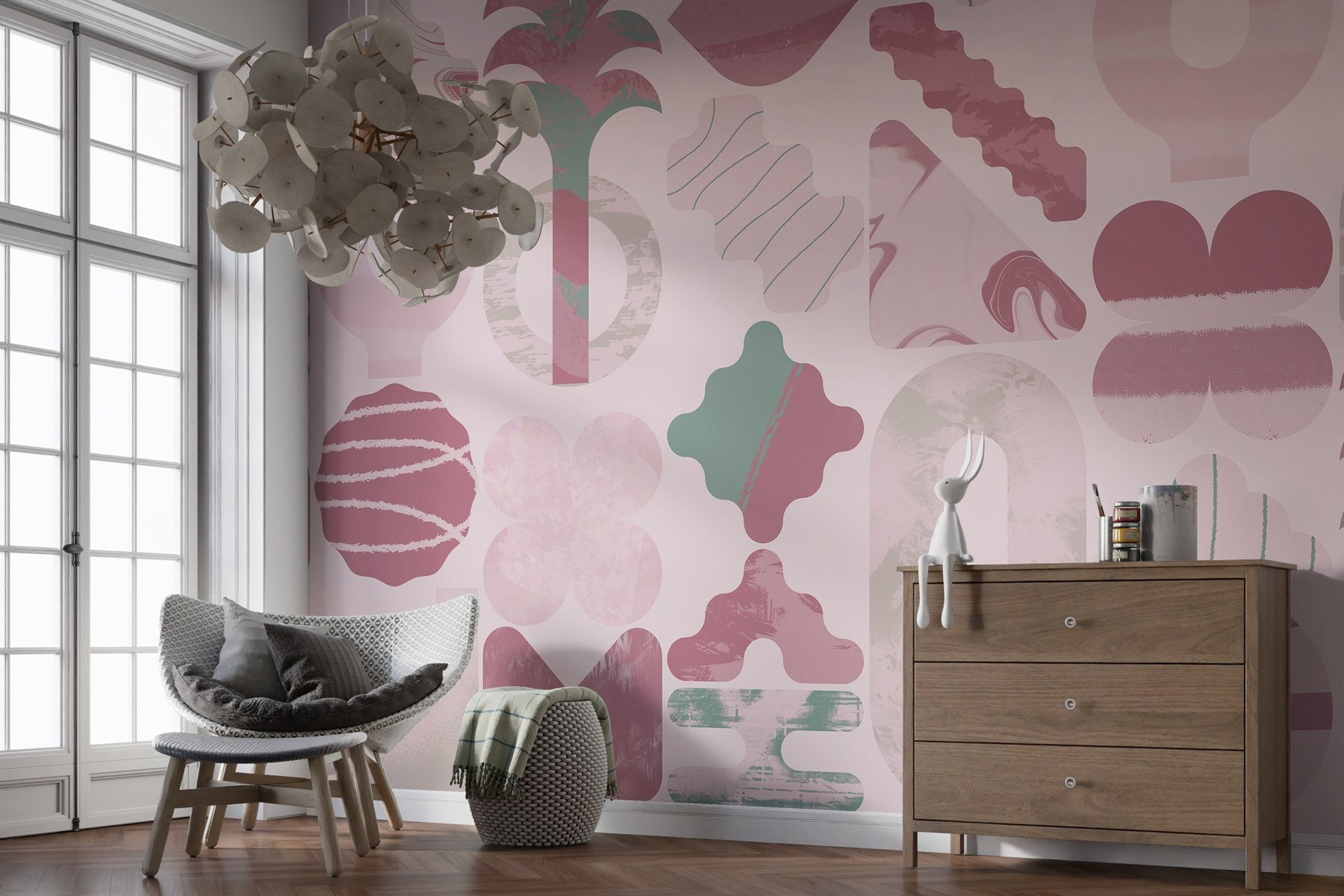 Transforme su espacio con este encantador mural de pared que presenta una divertida mezcla de formas rosas y verdes que bailan sobre un fondo suave. Es como llevar un poco del encanto de una galería de arte a su hogar. Imagínese tomando café en un rincón acogedor mientras estas formas divertidas despiertan su creatividad: ¿quién iba a decir que la decoración podía hacer tanta magia? El ambiente extravagante de este mural es perfecto para alegrar una pared aburrida o añadir un toque de alegría a un cuarto infantil. No es sólo una pared, es un tema de conversación, un centro de inspiración. Déjate llevar por la fantasía y deja que tus paredes cuenten una historia.
