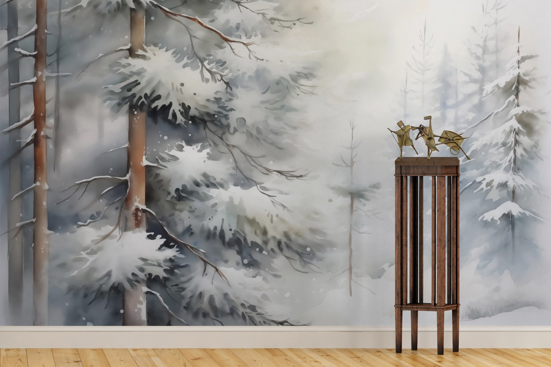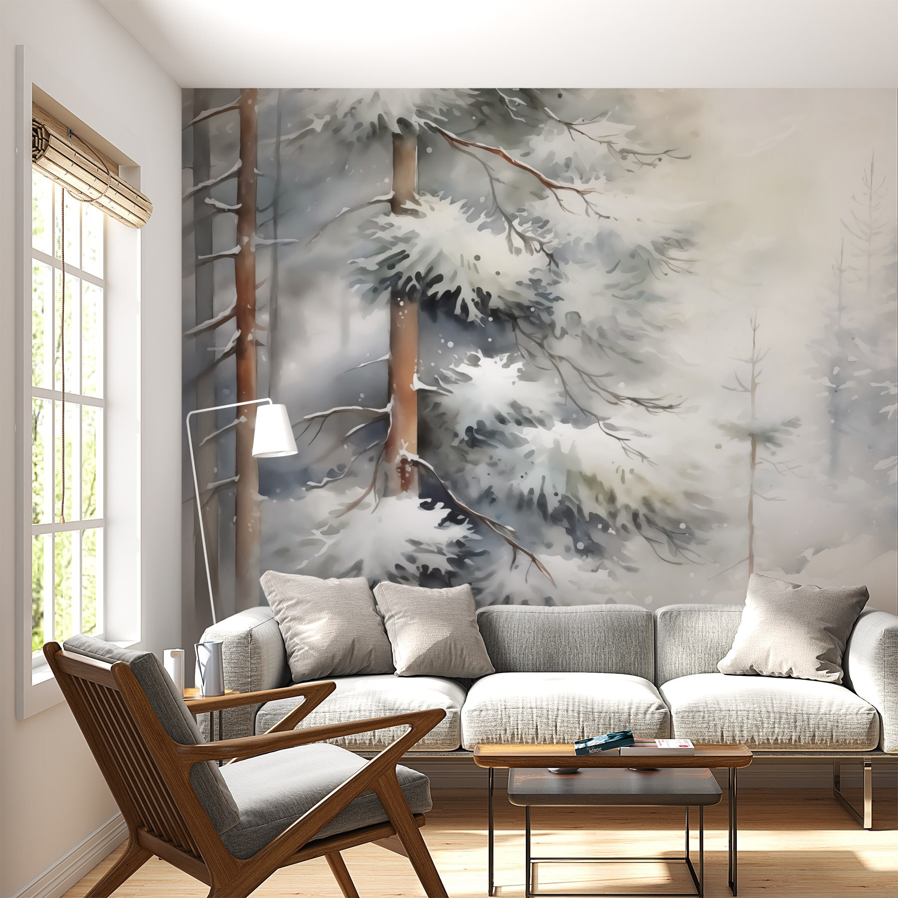 Imagínese entrar en un sereno país de las maravillas invernal cada vez que entre en su espacio. Este mural de árboles nevados trae ese frío acogedor directamente a sus paredes, perfecto para aquellos que adoran la tranquila belleza de la naturaleza. Las suaves tonalidades de blanco y gris crean una atmósfera relajante, como una taza de cacao caliente en un día de nieve. Es como abrazar un pino, ¡pero sin frío! Perfecta para un salón o un rincón acogedor, despertará sonrisas y dará calidez a las noches frías. Transforma tu casa en un refugio en el bosque, ¡sin necesidad de botas de nieve!