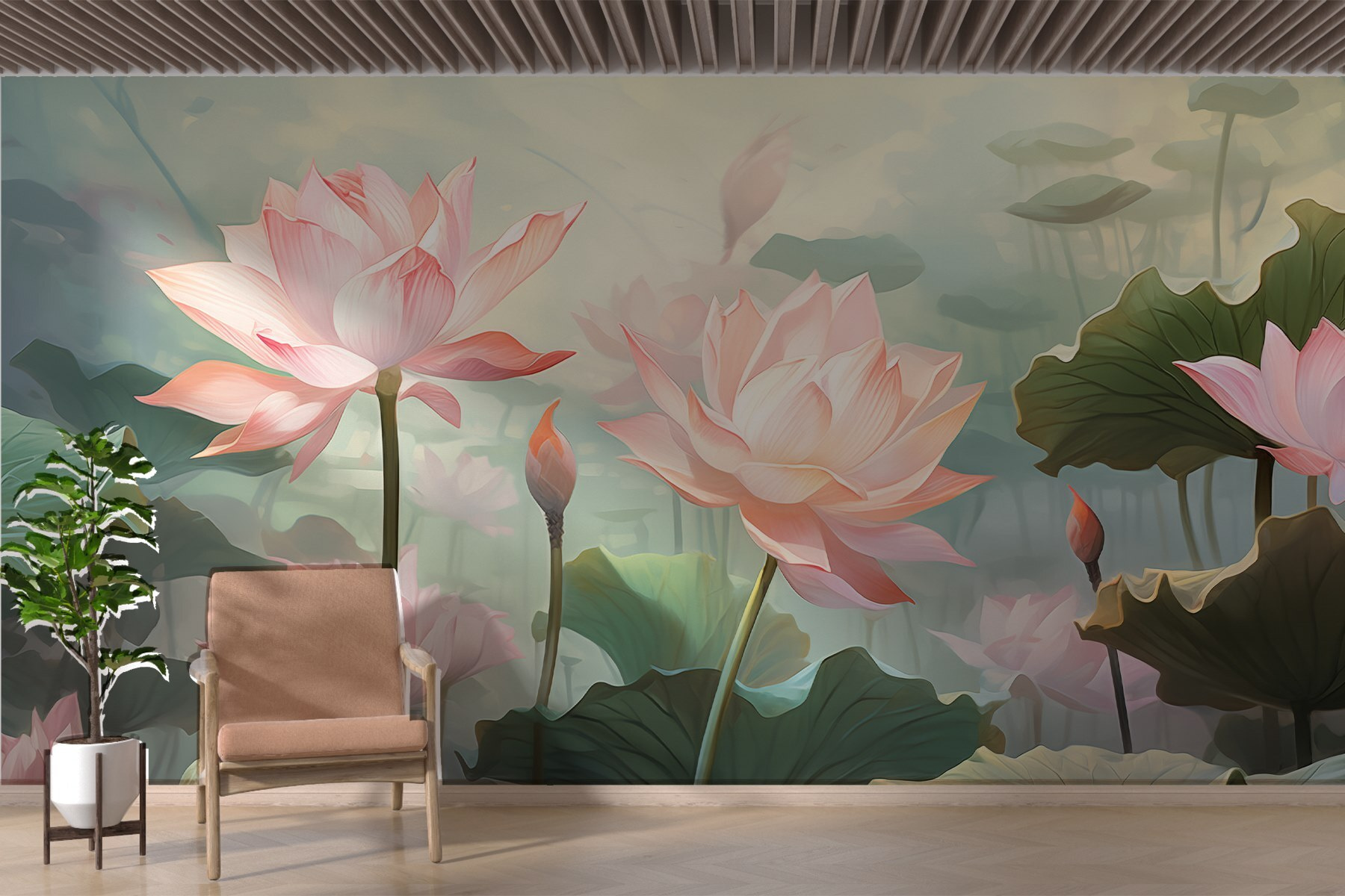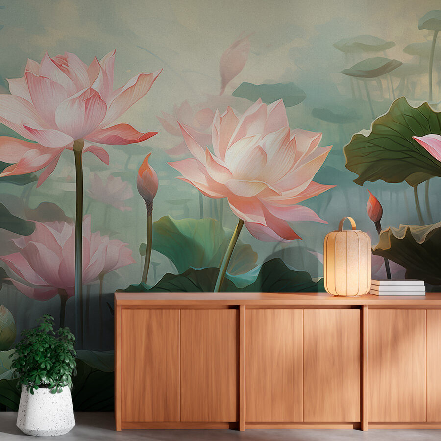 Transforme cualquier habitación en un oasis de serenidad con este impresionante mural que presenta un encantador grupo de flores rosas entre exuberantes hojas verdes. Imagina entrar en tu espacio y sentir una calma instantánea que te invade, como una suave brisa en un día cálido. Los tonos suaves y los delicados detalles invitan a una sensación de paz, por lo que es perfecto para un rincón de lectura acogedor o incluso para una cocina vibrante.