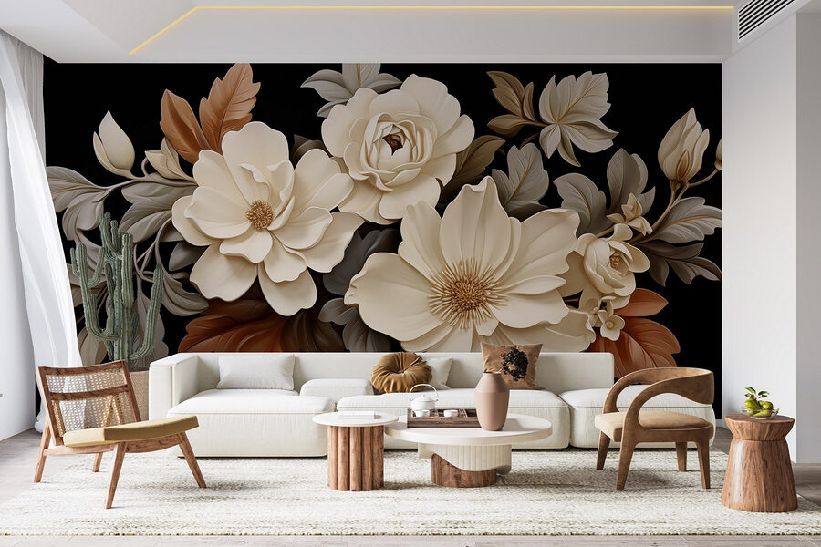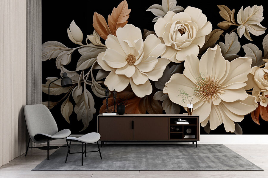 Transforme cualquier espacio con este impresionante mural de pared con un grupo de delicadas flores blancas entre cálidas hojas marrones. Es como traer un trocito de naturaleza al interior, ¡sin el molesto polen! Imagínese despertarse con esta elegante vista: qué refrescante, ¿verdad? Las suaves y cremosas flores resaltan sobre un elegante fondo negro, añadiendo una elegancia inesperada. Perfecto para un acogedor dormitorio o un elegante salón, este mural aporta un ambiente tranquilo y sofisticado. No es sólo decoración; es una experiencia, ¡un soplo de aire fresco en tus paredes! Así que adelante, ¡deje que sus paredes florezcan!