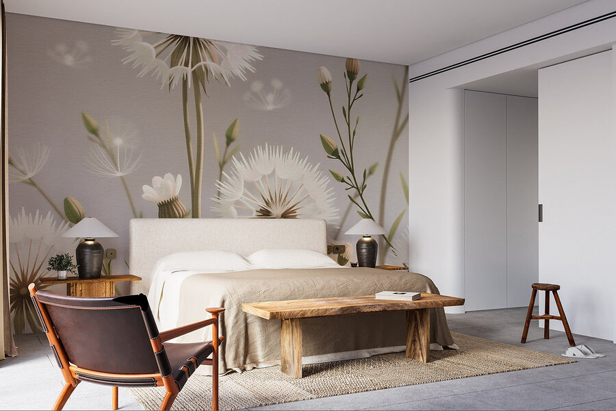Transforme su espacio con el mural “Delicate Blooms in Soft Palette”. Este bello diseño aporta un toque de naturaleza al interior, con encantadores dientes de león y suaves flores. Imagine despertarse y ser recibido por esta relajante obra de arte, ¡es como un suave susurro del jardín!