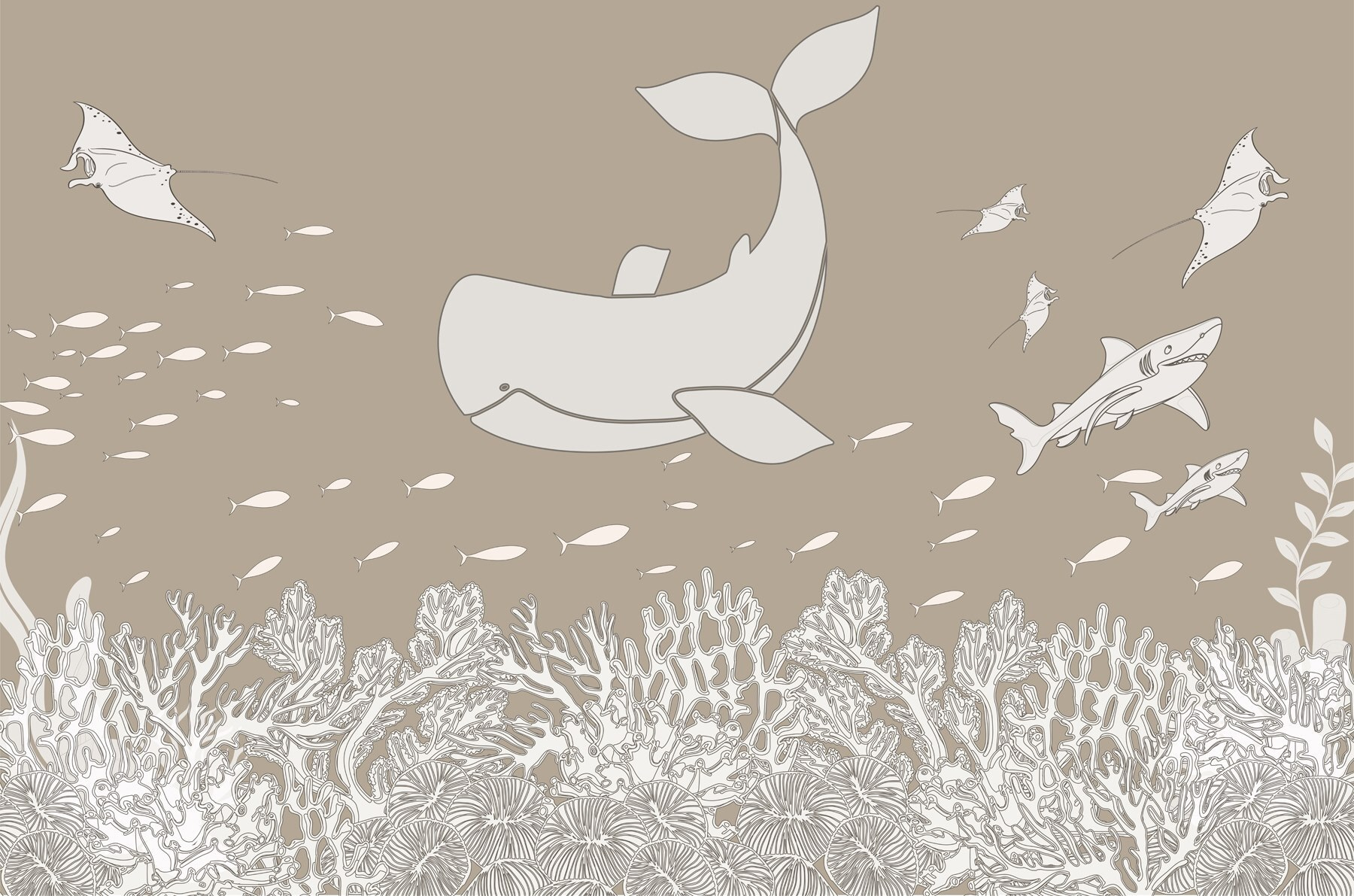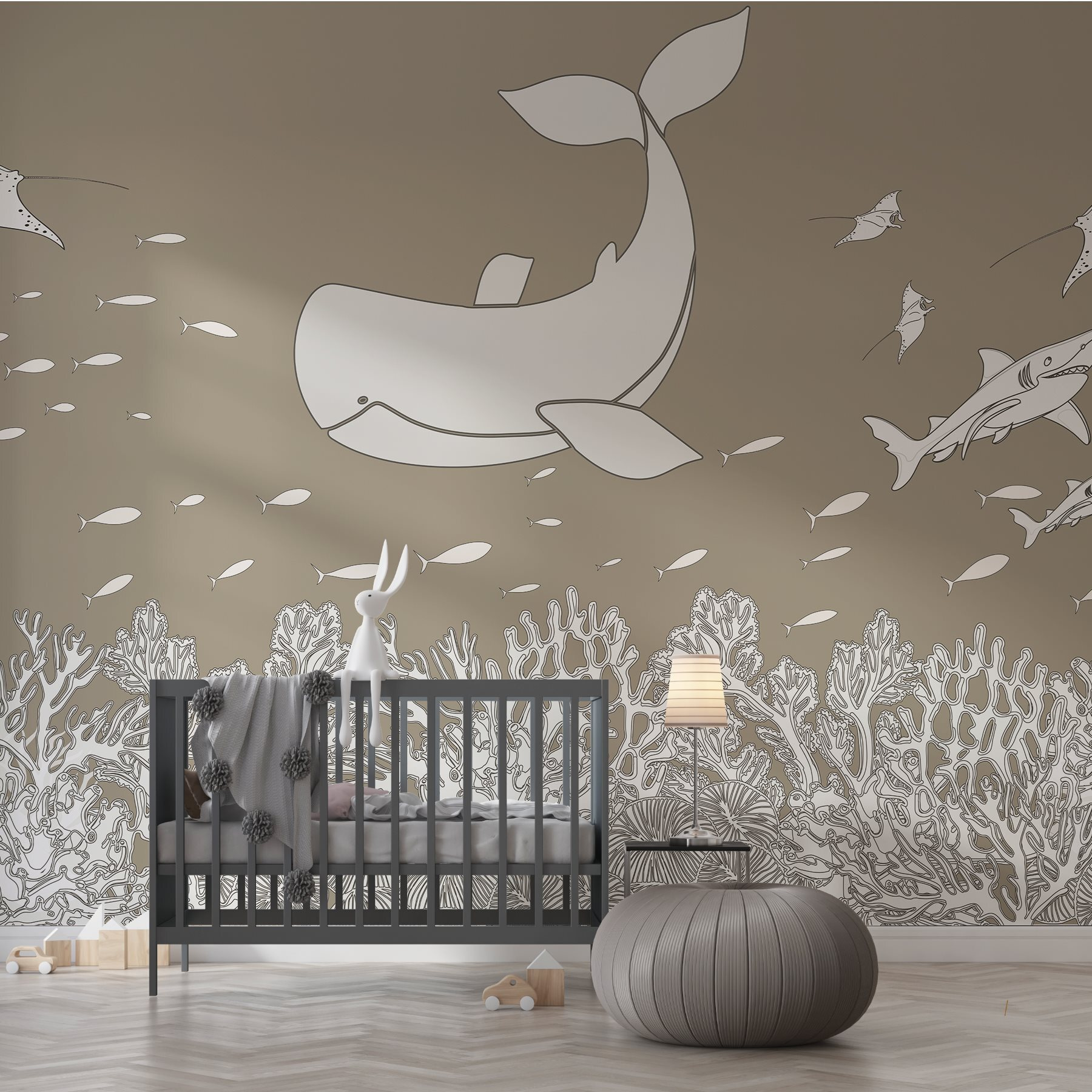 Sumérgete en un tranquilo mundo submarino con el mural “Ballena y pez bajo el agua”. Imagínese un mar sereno por el que se desliza una apacible ballena, mientras bancos de peces juguetones se lanzan al vuelo: ¡es como tener un pequeño océano en la pared! Este mural aporta un ambiente relajante, perfecto para cualquier habitación en la que la relajación sea clave. Imagínese leyendo un libro mientras las criaturas marinas bailan a su alrededor. Es una escapada encantadora. Además, ¿a quién no le gustaría sentir que tiene una aventura submarina secreta en casa? Perfecto para los amantes del mar o para cualquiera que desee un toque de fantasía.