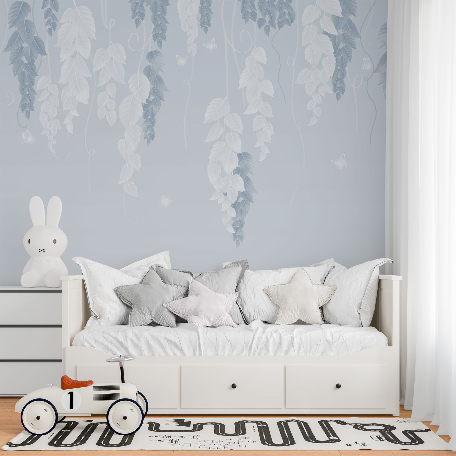 Transforme cualquier espacio en una escapada serena con este impresionante mural de pared, “Hojas y mariposas blancas y azules”. Imagine entrar en un jardín de ensueño, donde delicadas hojas caen suavemente en cascada y las mariposas revolotean en suaves azules y blancos. Es como llevar la calma de la naturaleza al interior, perfecto para un rincón de lectura acogedor o un dormitorio tranquilo. Además, los colores fríos crean un ambiente refrescante, por lo que es muy fácil de combinar con todo tipo de decoración. No es sólo una pared; es un trocito de tranquilidad que susurra: “Relájate, te lo has ganado”. Así que adelante, abrace al gurú del diseño que lleva dentro: este mural podría inspirar una fiesta del té con buenos amigos o un momento de tranquila reflexión. ¿Quién no querría ese pequeño toque de naturaleza?