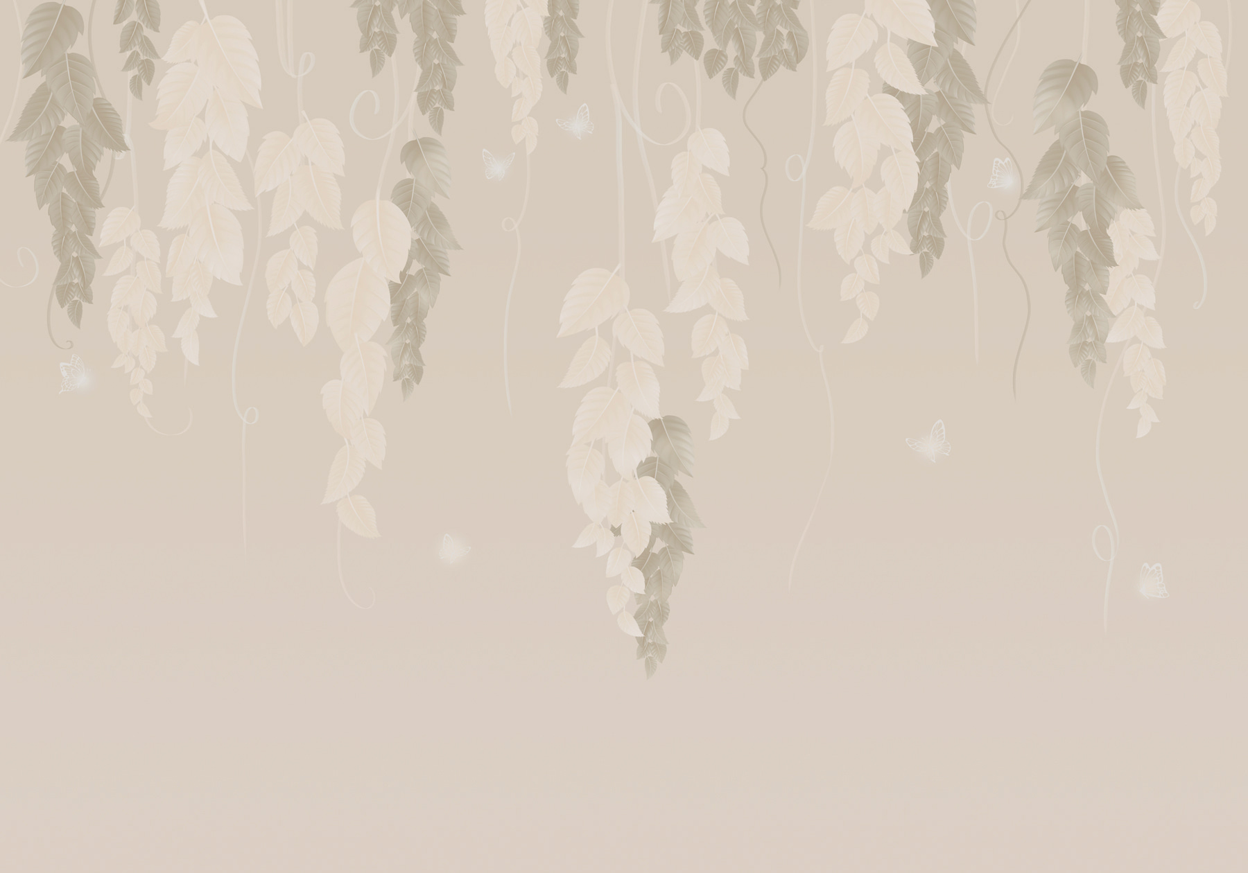 Transforme su espacio en un refugio sereno con este encantador mural de pared con delicadas hojas y caprichosas mariposas. Imagínese entrar en una habitación donde le rodea la suave elegancia de la naturaleza: es como adentrarse en un apacible claro del bosque sin salir de casa. Los suaves tonos verdes y crema crean un ambiente tranquilo perfecto para relajarse después de un largo día o tomar un café en una perezosa mañana de domingo.