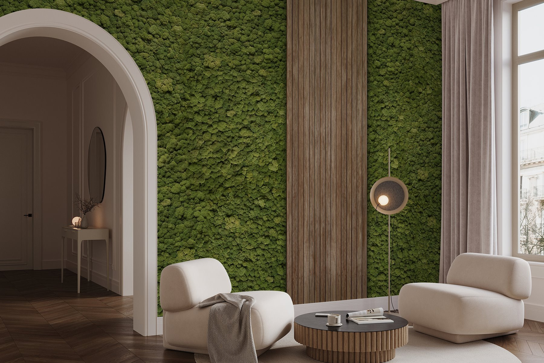 Transforme su espacio con el mural “Tablones de madera sobre una alfombra verde”: es como llevar el aire libre al interior, ¡sin los bichos ni las inclemencias del tiempo! Imagínese entrar en una acogedora cabaña cada día, con una impresionante textura de madera que resalta sobre el exuberante fondo verde. Es perfecto para crear un ambiente cálido y acogedor en cualquier habitación. Tus amigos pensarán que tienes un jardín secreto escondido. Además, ¿a quién no le gusta un poco de vegetación? Es como un abrazo tranquilizador para tus paredes. Imagínate tomando el té rodeado de naturaleza, sin tener que limpiarlo todo. Perfecto tanto para los soñadores como para los amantes de la decoración.