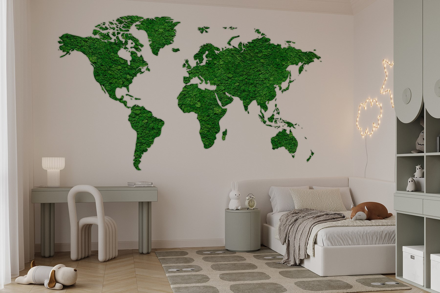 Transforme su espacio con este impresionante mural de pared con un mapa del mundo hecho enteramente de exuberantes plantas verdes. Es como llevar un trozo de naturaleza al interior, ¡sin necesidad de regar! Imagínese estar en una habitación en la que los continentes están hechos de una vegetación vibrante. Despierta la curiosidad y la conversación, perfecto para esos momentos de “¿dónde está ese lugar? Además, transmite una sensación de calma, como una bocanada de aire fresco. Ya sea en el salón o en la oficina, este mural está destinado a inspirar el deseo de viajar. ¿Quién iba a decir que la decoración podía ser tan aventurera?