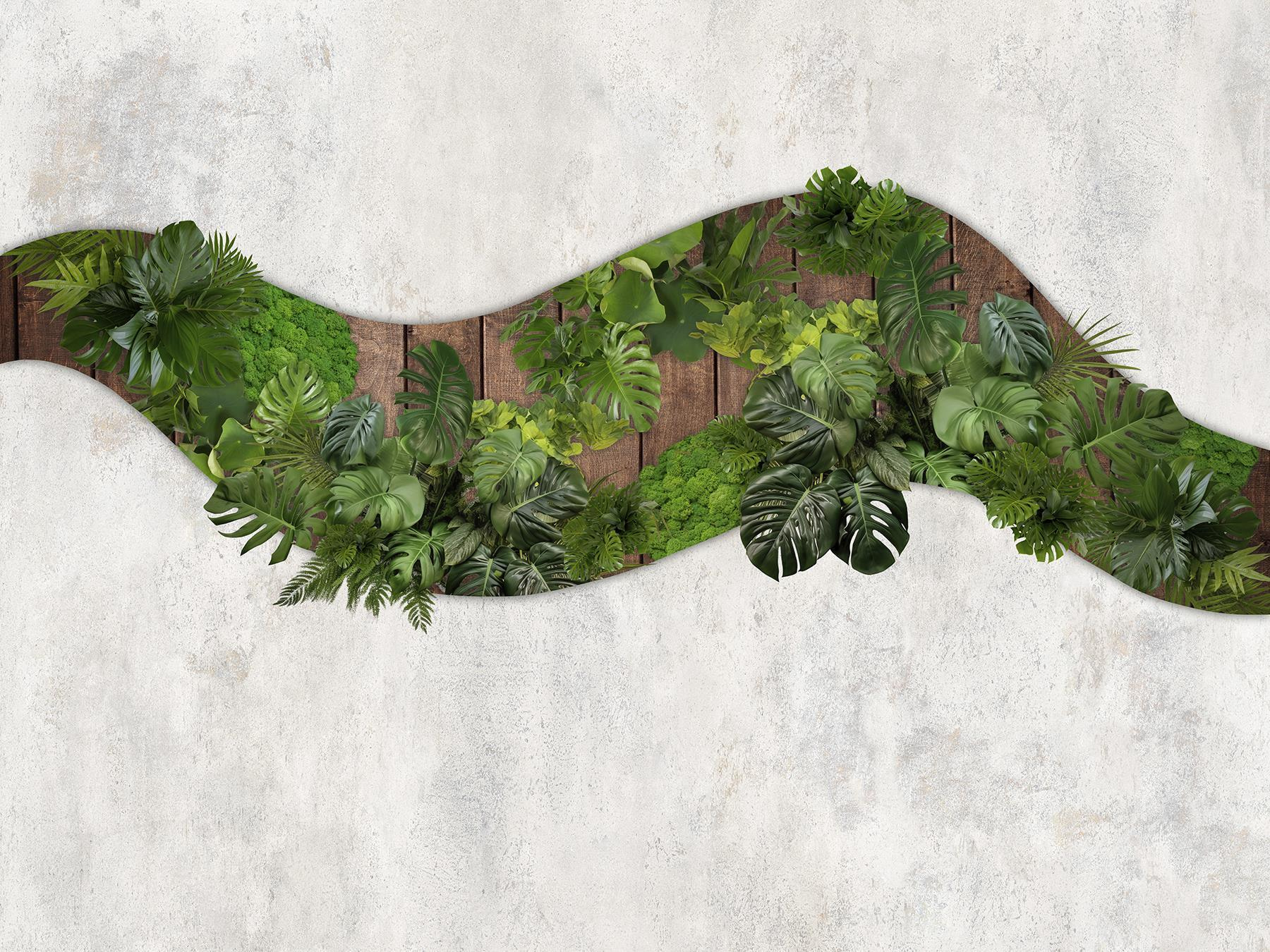 Fotomurales Hojas verdes sobre una superficie de madera (SKU: w02658)
