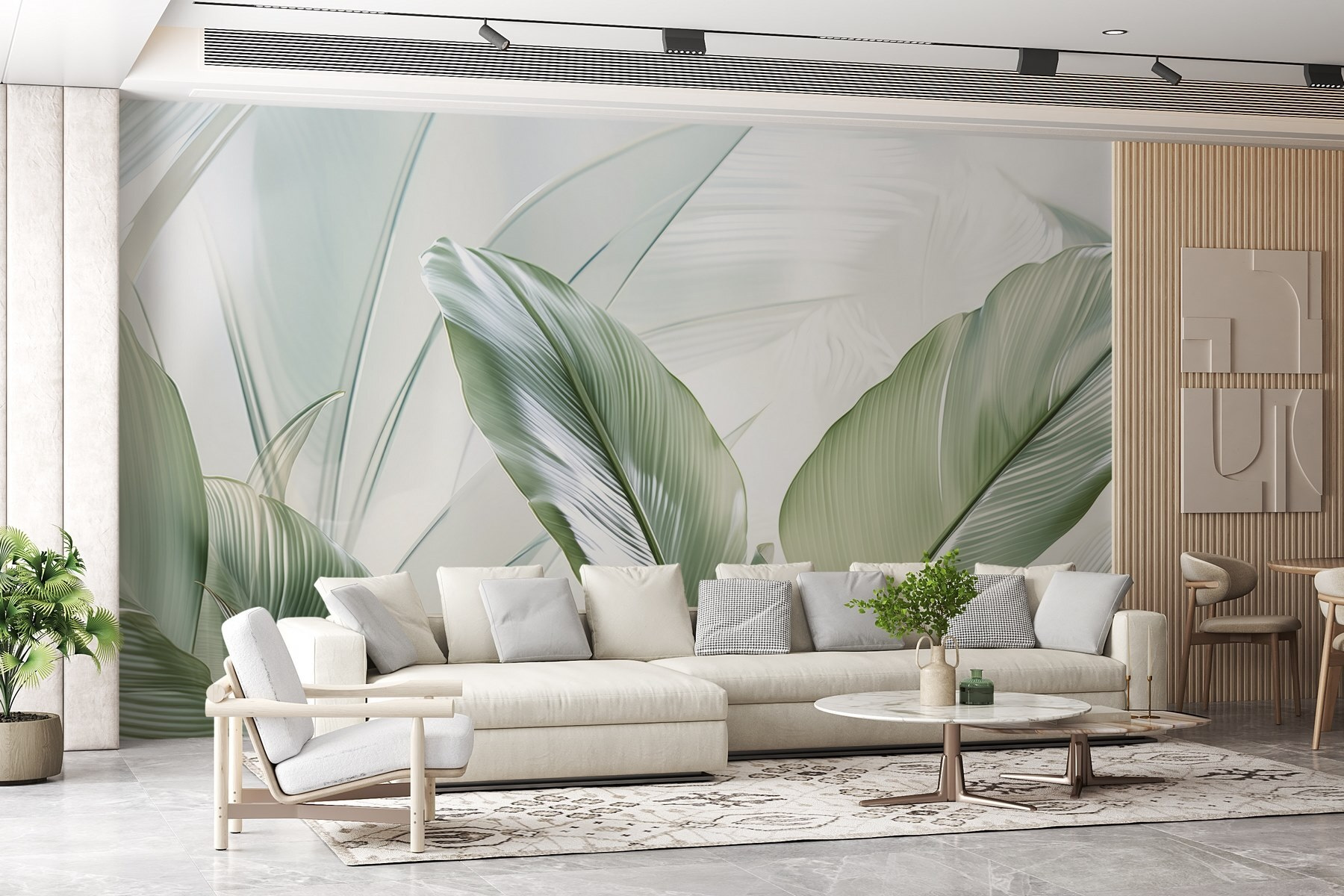 Transforme su espacio con este impresionante mural de pared, “Hojas exuberantes en luz suave”. Es como entrar en una tranquila selva tropical, ¡directamente desde tu salón! Los tonos suaves y los delicados dibujos de las hojas crean un ambiente sereno, perfecto para relajarse después de un largo día, ¿quién no querría eso? Imagínate acurrucándote con un libro, rodeado de estos verdes tranquilizantes. Es como llevar el aire libre al interior, pero sin los bichos. Además, hace maravillas en espacios pequeños, dándoles una sensación de amplitud. Así que adelante, ¡deja que estas hojas susurren relajación en tu hogar!