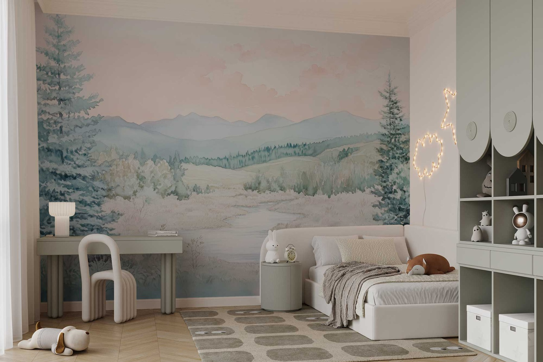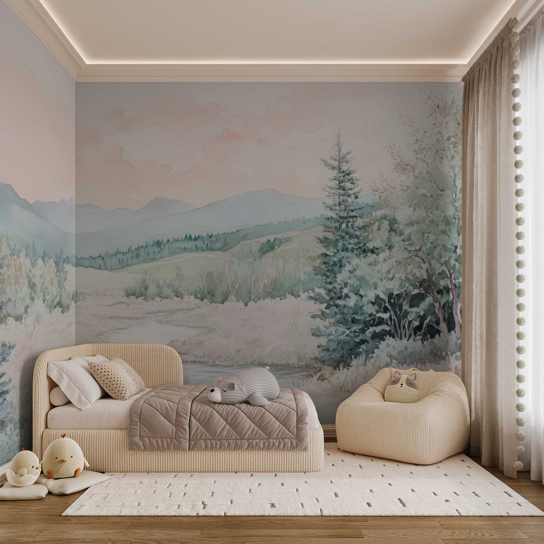 Transforme una pared lisa en una escapada serena con este encantador mural de acuarela de un río serpenteando a través de un exuberante valle. Esta belleza captura pasteles suaves y pinceladas suaves, haciendo que se sienta como un abrazo acogedor para cualquier espacio. Imagínese tomando su café matutino mientras contempla esta apacible escena: es como unas minivacaciones en casa. Perfecto para dormitorios o salones, añade un ambiente relajante que puede calmar incluso los días más ajetreados. Además, los amantes de la naturaleza se sentirán como en casa, rodeados de árboles e impresionantes montañas. Adelante, trae un poco de aire libre y deja que tus paredes cuenten una historia de tranquilidad.
