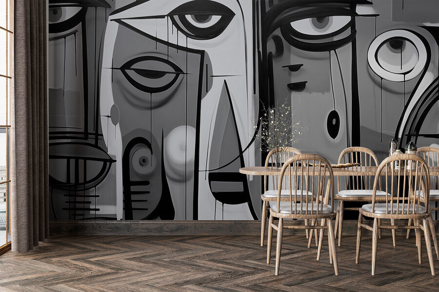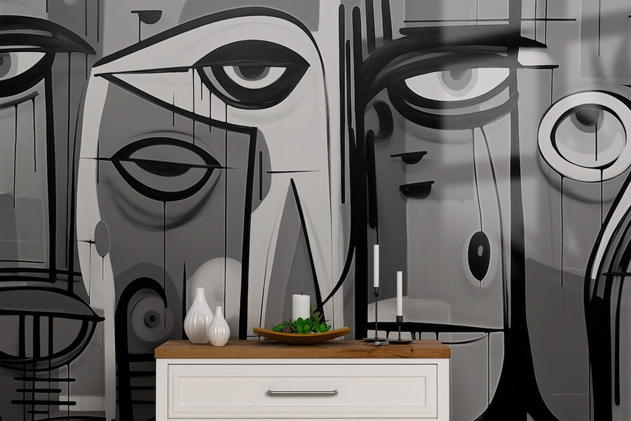 Transforme su espacio con este llamativo mural de pared en blanco y negro, con rostros cautivadores que parecen asomarse a su mundo. Es como mantener una conversación con el arte, llena de emoción e intriga. Imagínatelo: entras en tu habitación y, ¡bam! Estas expresivas caras te atraen, despertando tu curiosidad e incluso una sonrisa. Perfecto para una sala de estar o un rincón creativo, añade una capa de profundidad sin que todos los colores compitan por la atención. Además, es un fantástico rompehielos para cualquiera que se acerque. ¿Quién no querría reflexionar sobre las historias que se esconden tras esas intensas miradas? Perfectamente contemporáneo y chic sin esfuerzo.