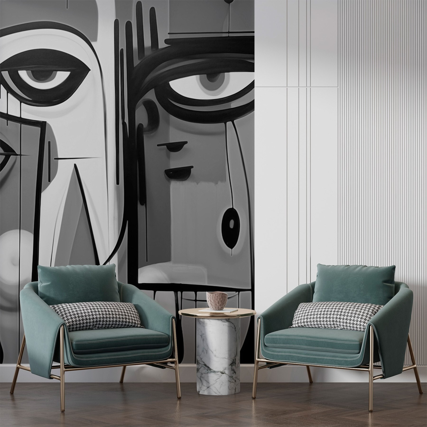 Transforme su espacio con este llamativo mural de pared en blanco y negro, con rostros cautivadores que parecen asomarse a su mundo. Es como mantener una conversación con el arte, llena de emoción e intriga. Imagínatelo: entras en tu habitación y, ¡bam! Estas expresivas caras te atraen, despertando tu curiosidad e incluso una sonrisa. Perfecto para una sala de estar o un rincón creativo, añade una capa de profundidad sin que todos los colores compitan por la atención. Además, es un fantástico rompehielos para cualquiera que se acerque. ¿Quién no querría reflexionar sobre las historias que se esconden tras esas intensas miradas? Perfectamente contemporáneo y chic sin esfuerzo.