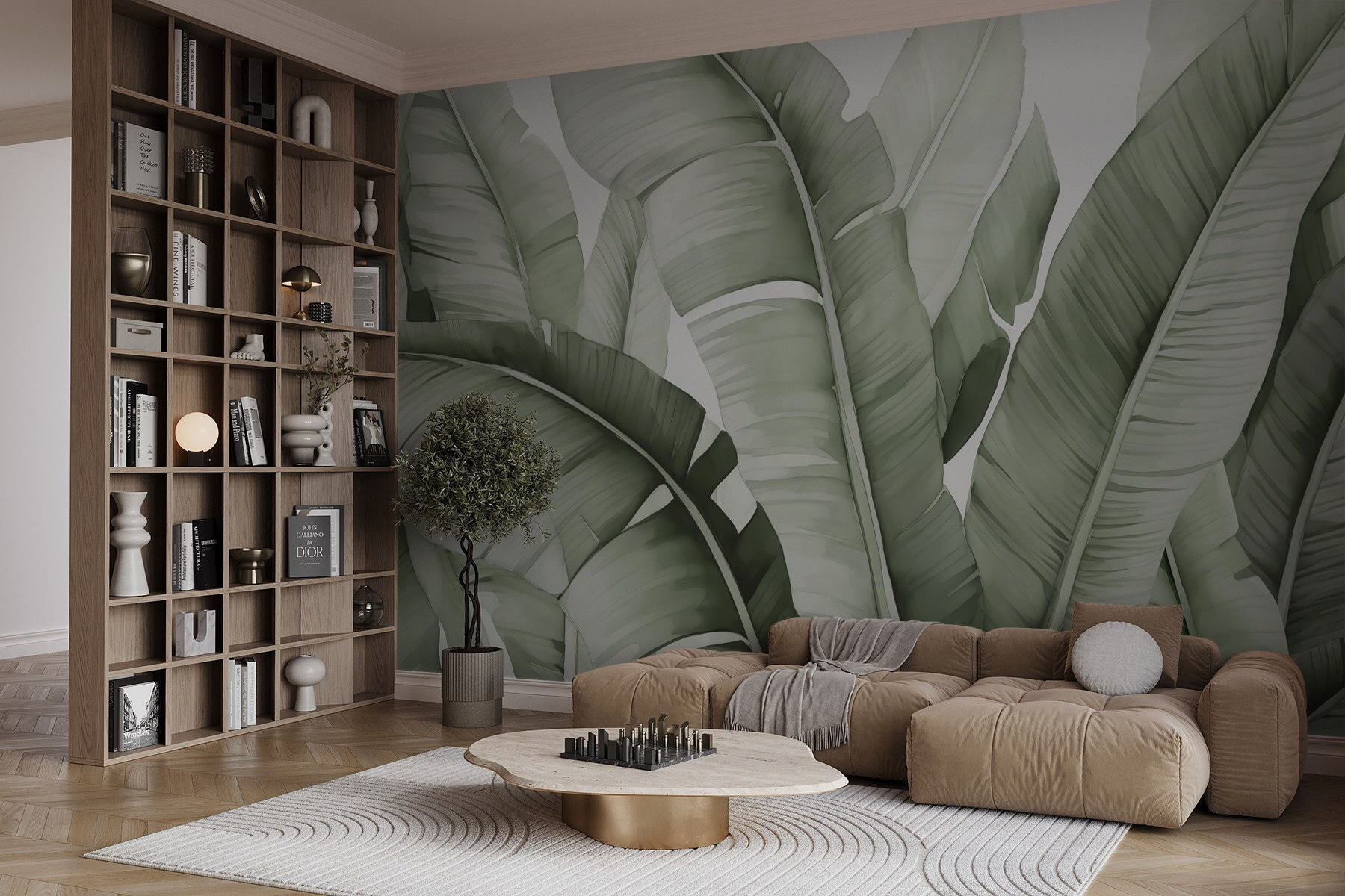 Transforme cualquier habitación en un oasis de serenidad con este mural de exuberantes hojas verdes. Imagínese entrar en una tranquila escapada tropical en su propia casa. Cada hoja parece susurrar secretos de la selva, invitándole a relajarse. Es perfecto para aquellos que buscan un poco de terapia natural sin necesidad de tener un pulgar verde. Imagínese acogedoras tardes tomando el té, rodeado de verdes relajantes que dan vida a su espacio. Los suaves tonos de este mural crean un ambiente refrescante, por lo que es un gran telón de fondo para todos tus sueños decorativos. Brinde por traer un trozo de aire libre al interior.