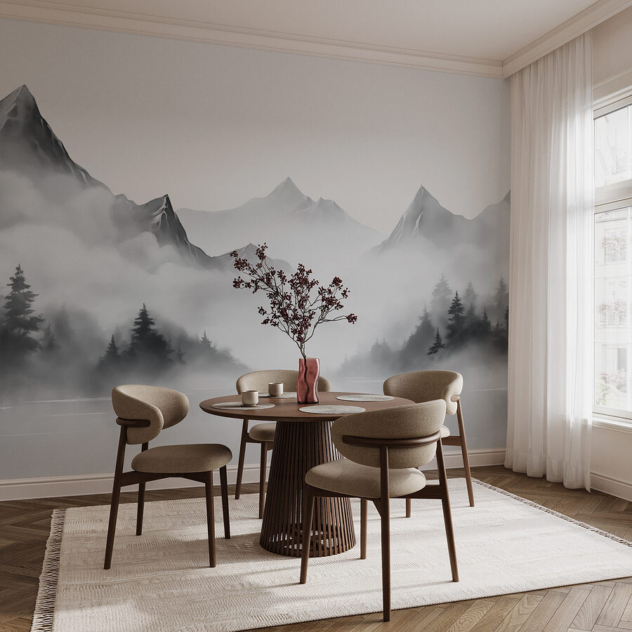 Imagine entrar en una acogedora cabaña donde la suave niebla se extiende sobre majestuosas montañas. Este mural, “Foggy Mountain Landscape” (Paisaje montañoso con niebla), lleva ese ambiente a su espacio, transformando lo ordinario en algo mágico. La suave mezcla de tonos apagados envuelve tu habitación en calidez, como un abrazo de la naturaleza, pero sin las botas embarradas. Es perfecta para un salón, un dormitorio o incluso un rincón de lectura tranquilo. Imagínese tomando el té, perdido en un buen libro mientras la serena vista le susurra relajación. Es como tener tu propio trozo de naturaleza, sin los molestos bichos. El atractivo encanto de este mural hace que cada día parezca una pequeña escapada.