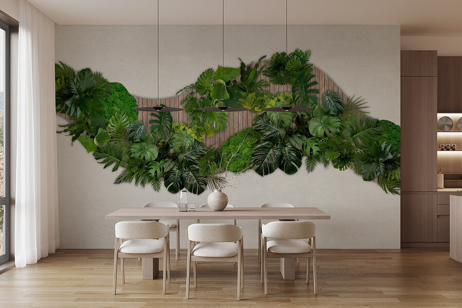 Transforme su espacio en un exuberante oasis con este impresionante mural que presenta un vibrante grupo de hojas verdes sobre una superficie de madera rústica. Imagínese que entra en una habitación que parece un paraíso al aire libre, incluso podría oír el canto de los pájaros (de acuerdo, tal vez sólo en su cabeza). Este mural lleva las vibraciones tropicales directamente a sus paredes, ¿y a quién no le gusta un poco de decoración inspirada en la naturaleza?