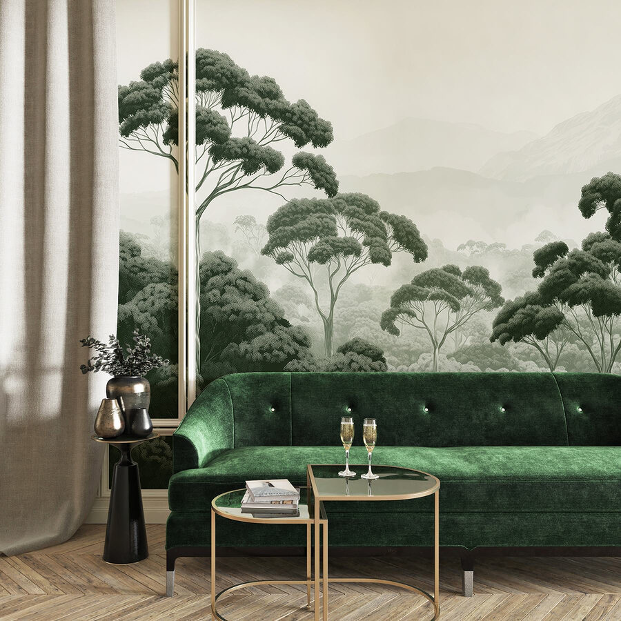 Adéntrese en una tranquila escapada con este impresionante mural de pared que muestra una serena escena forestal. Imagine el suave susurro de las hojas y el susurro de la brisa mientras transforma su espacio en un refugio inspirado en la naturaleza. Los árboles se elevan hacia el cielo, invitando a una sensación de paz y asombro, mientras que las suaves montañas del fondo parecen invitarle a seguir explorando. Es como si tuvieras tu propio pedacito de naturaleza salvaje, pero sin los bichos del exterior, ¿no es genial? Perfecto para salones acogedores o dormitorios tranquilos, este mural convertirá cada mirada en una pequeña escapada al bosque.