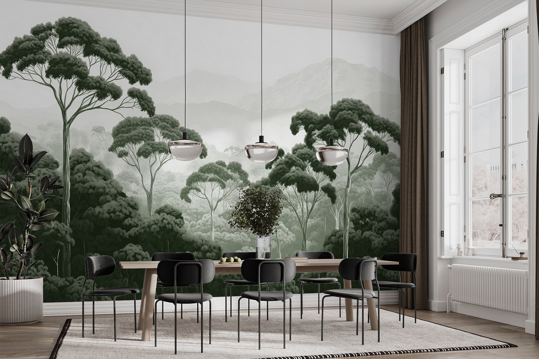 Adéntrese en una tranquila escapada con este impresionante mural de pared que muestra una serena escena forestal. Imagine el suave susurro de las hojas y el susurro de la brisa mientras transforma su espacio en un refugio inspirado en la naturaleza. Los árboles se elevan hacia el cielo, invitando a una sensación de paz y asombro, mientras que las suaves montañas del fondo parecen invitarle a seguir explorando. Es como si tuvieras tu propio pedacito de naturaleza salvaje, pero sin los bichos del exterior, ¿no es genial? Perfecto para salones acogedores o dormitorios tranquilos, este mural convertirá cada mirada en una pequeña escapada al bosque.
