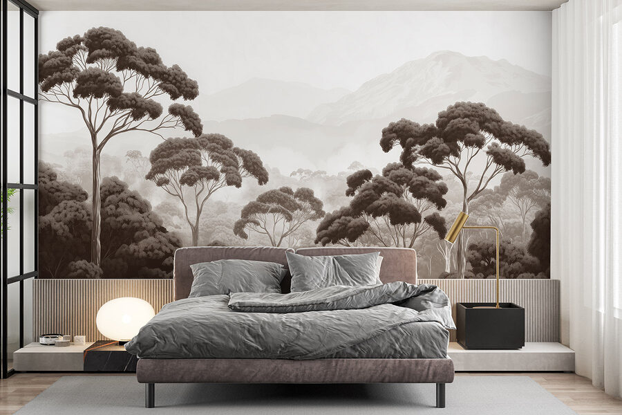 Transforme cualquier habitación en una escapada serena con este impresionante mural de pared que presenta una tranquila escena forestal: piense en árboles imponentes y majestuosas montañas de fondo. Imagínese despertarse con esta relajante vista cada día, como si la propia naturaleza se hubiera trasladado a su hogar. Los tonos suaves y terrosos evocan una sensación de paz, perfecta para descansar o incluso para añadir un ambiente acogedor durante esos maratones de Netflix. Es como llevar un poco de la naturaleza al interior, pero sin bichos ni zapatos embarrados. ¿Te apetece soñar despierto? Recuéstate y deja que tus ojos vaguen por este paisaje de ensueño. Perfecto para cualquier espacio, este mural hace que cada pared parezca un lugar de escapada.