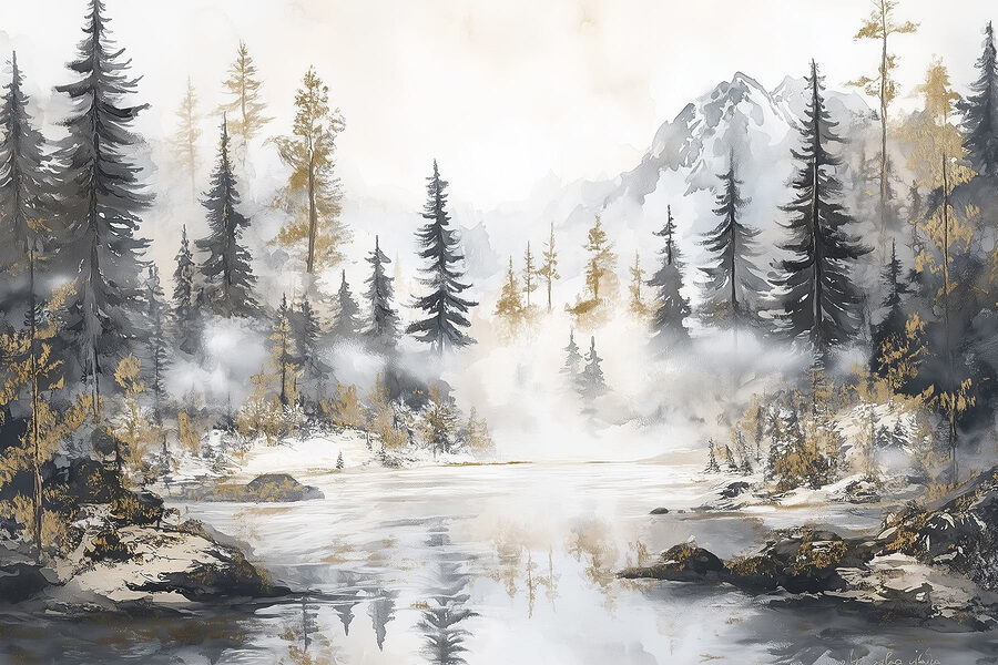 Fotomurales Acuarela de un bosque y montañas (SKU: w02741)