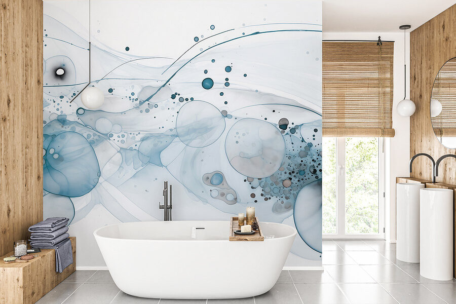 Transforme su espacio en una escapada de ensueño con “Olas etéreas de colores apagados”. Este mural susurra tranquilidad, salpicando azules suaves y grises suaves por la pared como un mar en calma en un día de brisa. Imagínese despertarse y ver esta belleza fluida cada mañana: es como tener una obra de arte serena que se mueve con la luz.