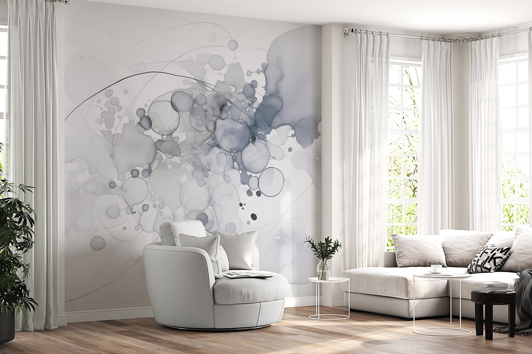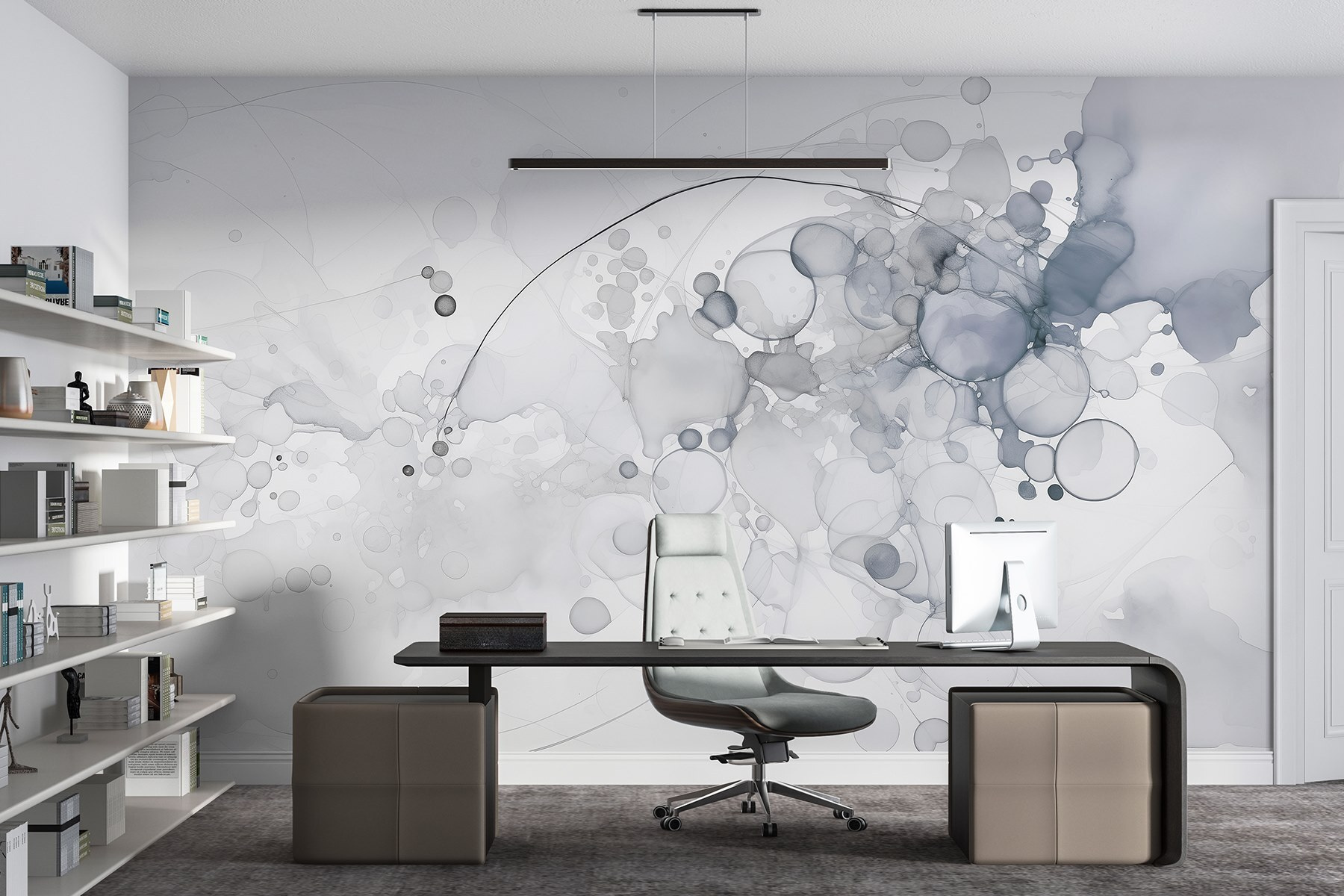 Transforme su espacio con “Murales de pared Formas abstractas en tonos suaves”. Este impresionante mural aporta una suave danza de colores a sus paredes, susurrando sofisticación sin llamar la atención. Imagínese entrar en una habitación donde los azules y grises suaves se arremolinan juntos, creando el tipo de vibración calmante que incluso su gato podría apreciar durante su rutina de siesta diaria.