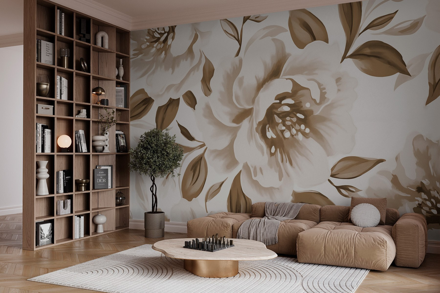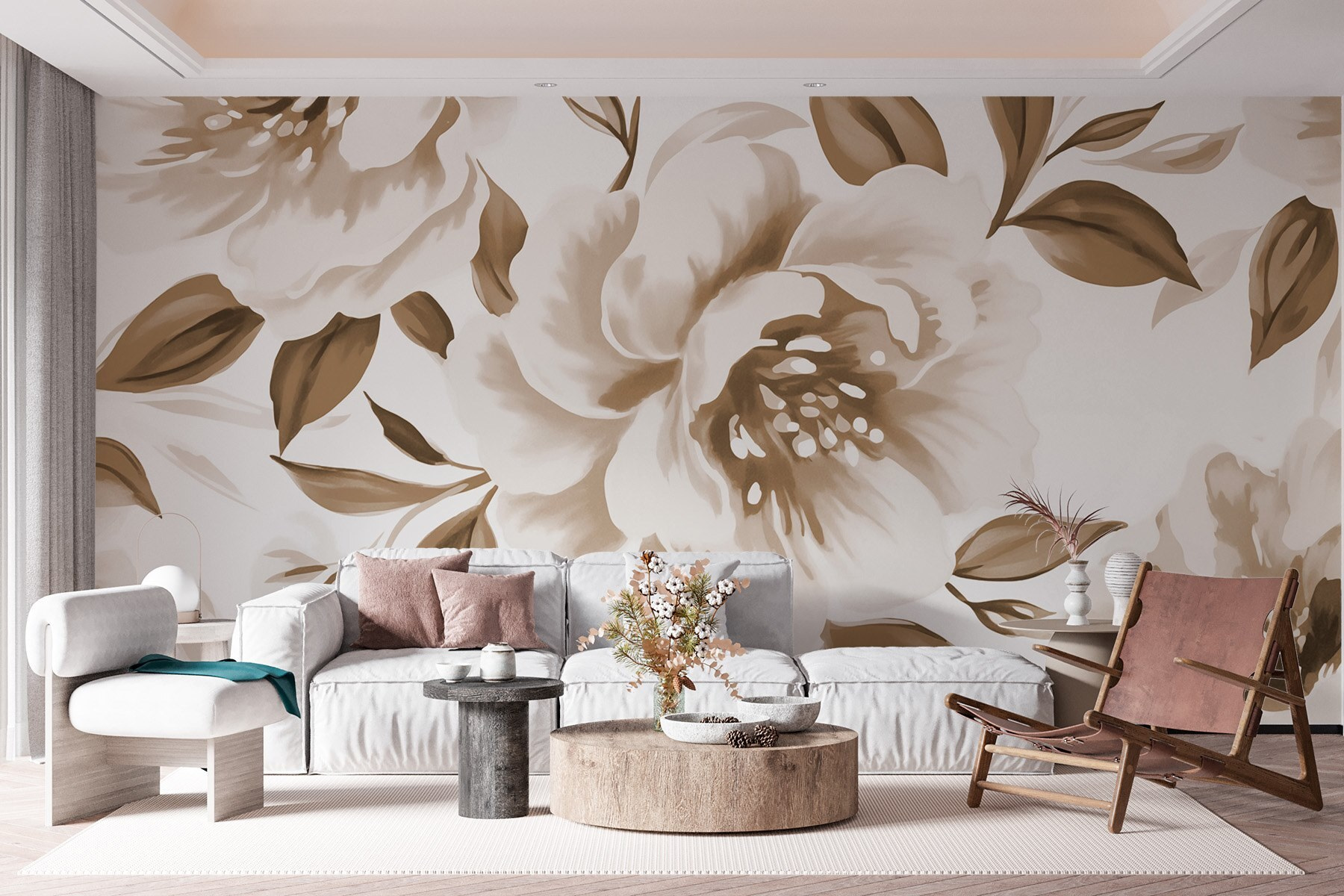 Transforme cualquier espacio con la encantadora “Elegancia floral en tonos suaves”. Imagínese este mural como una suave brisa primaveral, suave, acogedora y encantadora. Esas peonías y rosas parecen bailar por la pared, desprendiendo un ambiente relajado que susurra calidez. Imagínate tomando café en tu sillón favorito, rodeado de estas flores, y de repente el día se vuelve un poco más alegre. Es como tener un jardín secreto dentro de casa. Perfecto para rincones acogedores o incluso como elemento decorativo, este mural da vida sin llamar la atención. Es una decoración que se siente como un abrazo.