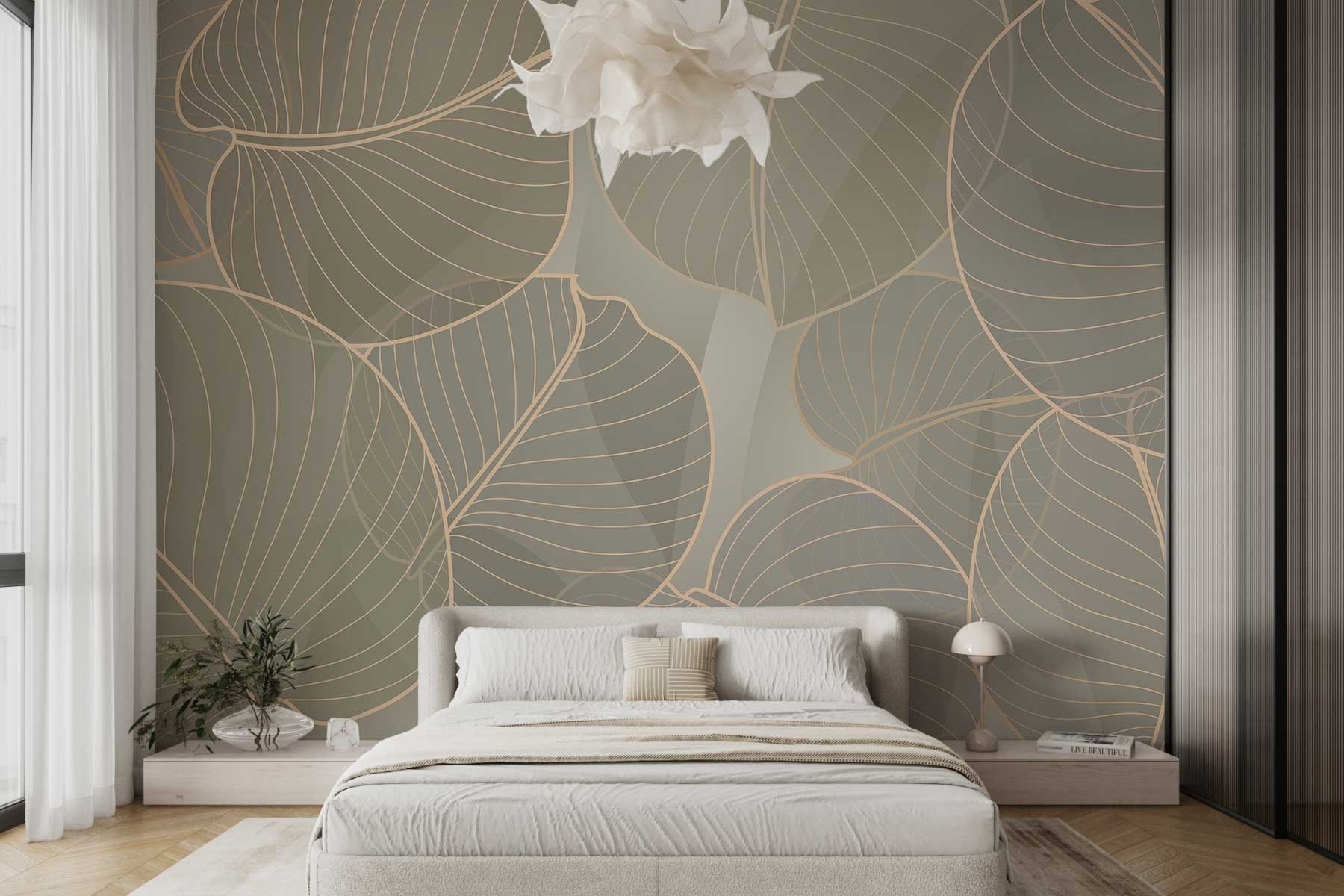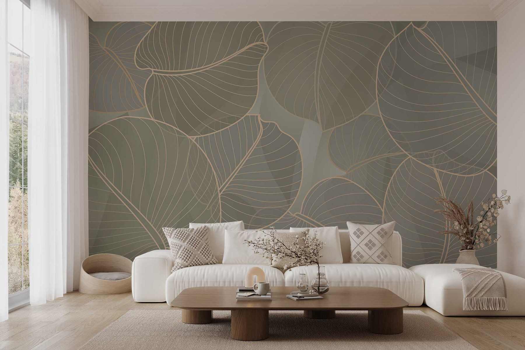 Transforme su espacio con el mural “Nature’s Delicate Leaf Patterns”, un soplo de aire fresco que susurra relajación. Imagínese entrar en una habitación adornada con diseños suaves y frondosos que le hagan sentir como si hubiera entrado en una tranquila jungla, ¡sin los bichos, por supuesto! Los tonos suaves y las líneas intrincadas crean un ambiente relajante que invita a soñar despierto e incluso a hacer un poco de yoga. Perfecto para un rincón de lectura o un rincón acogedor, este mural aporta un toque de naturaleza al interior. Es como un pequeño retiro en la pared. ¿Quién iba a decir que decorar podía ser tan refrescante?