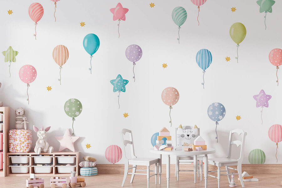 Alegra cualquier habitación con este encantador mural de pared con globos y estrellas. Imagina que entras en un espacio donde los globos de colores pastel flotan como si estuvieran listos para una fiesta, mientras las juguetonas estrellas centellean justo fuera de tu alcance. Es perfecto para habitaciones infantiles pero, sinceramente, ¿quién dice que los adultos no pueden deleitarse con la magia de los globos? Imagina a los más pequeños soñando bajo este alegre estampado, sintiéndose como en un cuento de hadas. Provoca alegría, risas y un toque de nostalgia. Deja que este mural desate una sensación de aventura y fantasía, ¡perfecto para transformar una pared anodina en un lienzo de ensueño!