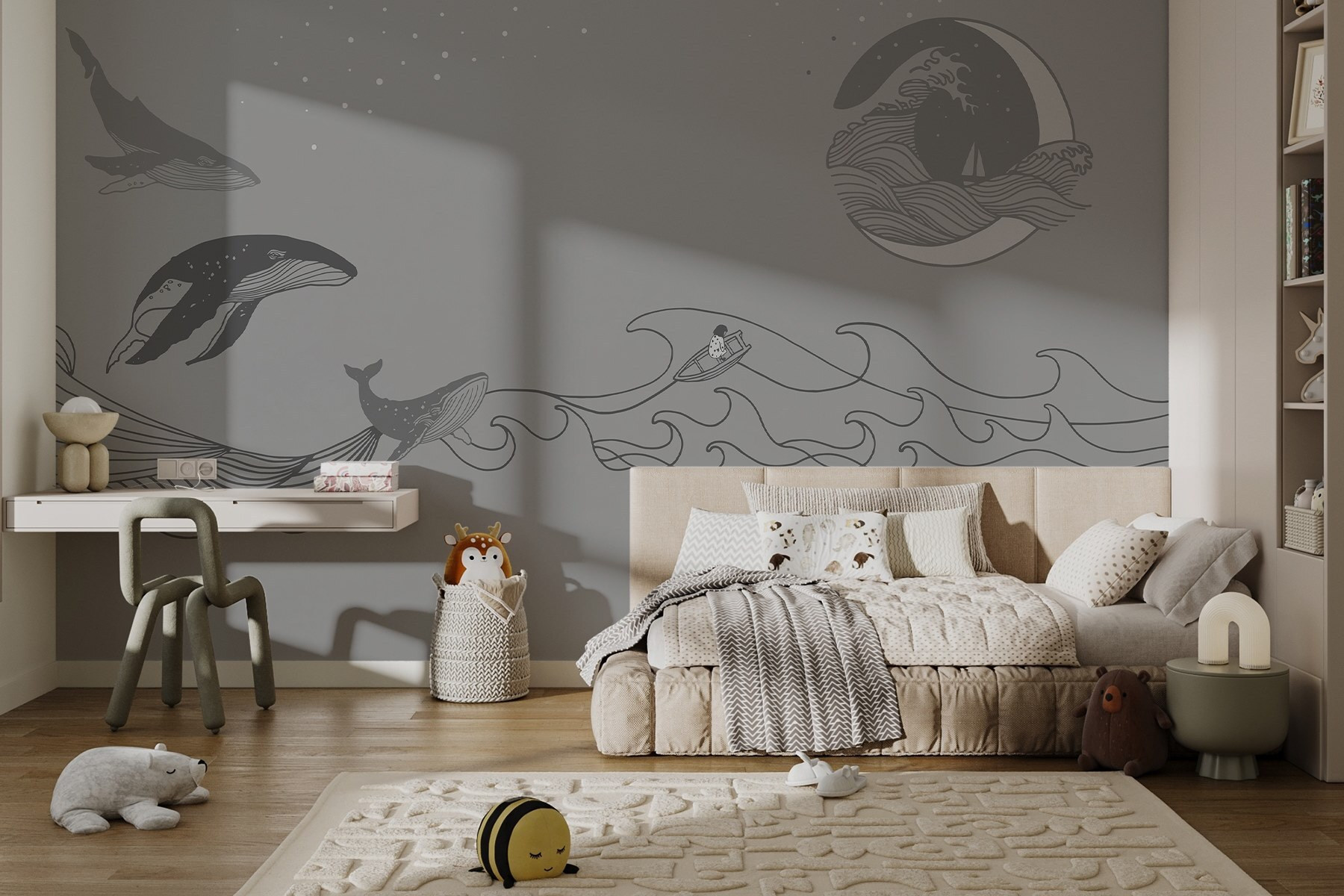 Este mural aporta un ambiente relajante, perfecto para salones o rincones acogedores. Imagínese tomando su café matutino, robando miradas a estos gentiles gigantes, y sintiendo que todas sus preocupaciones desaparecen, ¡como la crema solar en un día caluroso! Los colores suaves invitan a la paz, por lo que es un telón de fondo encantador para las tardes perezosas o conversaciones profundas. Es más que decoración: es una experiencia que espera a ser vivida. Quién sabe, ¡quizá te inspire algunas aventuras náuticas!