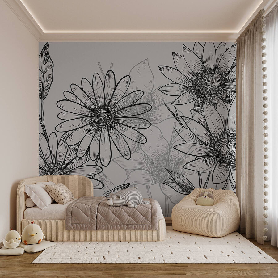 Tanto si adorna un acogedor salón como si ilumina un sencillo pasillo, añade un toque de color y encanto que hace vibrar los corazones. Perfecto para los amantes de las flores y para cualquiera que busque ese toque fresco y vibrante. Así que, ¿por qué no dejar que este mural traiga un poco de sol y vida a su espacio? ¡Es hora de un poco de magia floral!