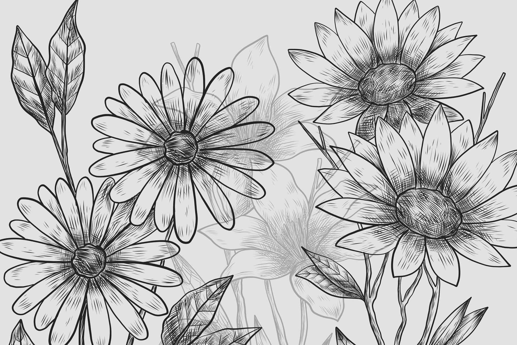 Transforme cualquier habitación en un paraíso floreciente con este impresionante mural de pared que presenta un encantador grupo de flores y hojas. Imagínese despertarse con estas preciosas flores cada día, con cada pétalo perfectamente dibujado. Es como tener un jardín en miniatura en casa, ¡sin la regadera!