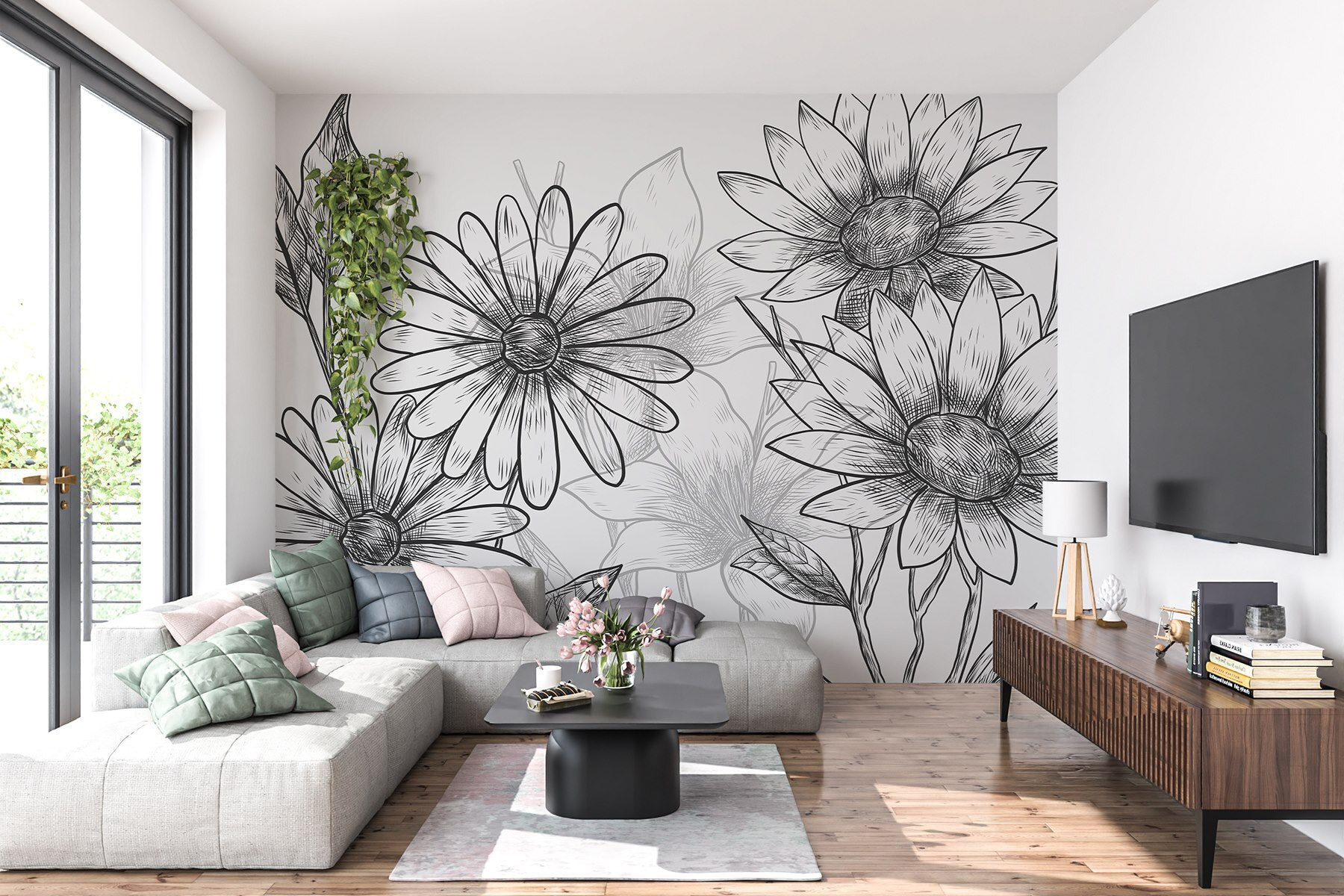Tanto si adorna un acogedor salón como si ilumina un sencillo pasillo, añade un toque de color y encanto que hace vibrar los corazones. Perfecto para los amantes de las flores y para cualquiera que busque ese toque fresco y vibrante. Así que, ¿por qué no dejar que este mural traiga un poco de sol y vida a su espacio? ¡Es hora de un poco de magia floral!