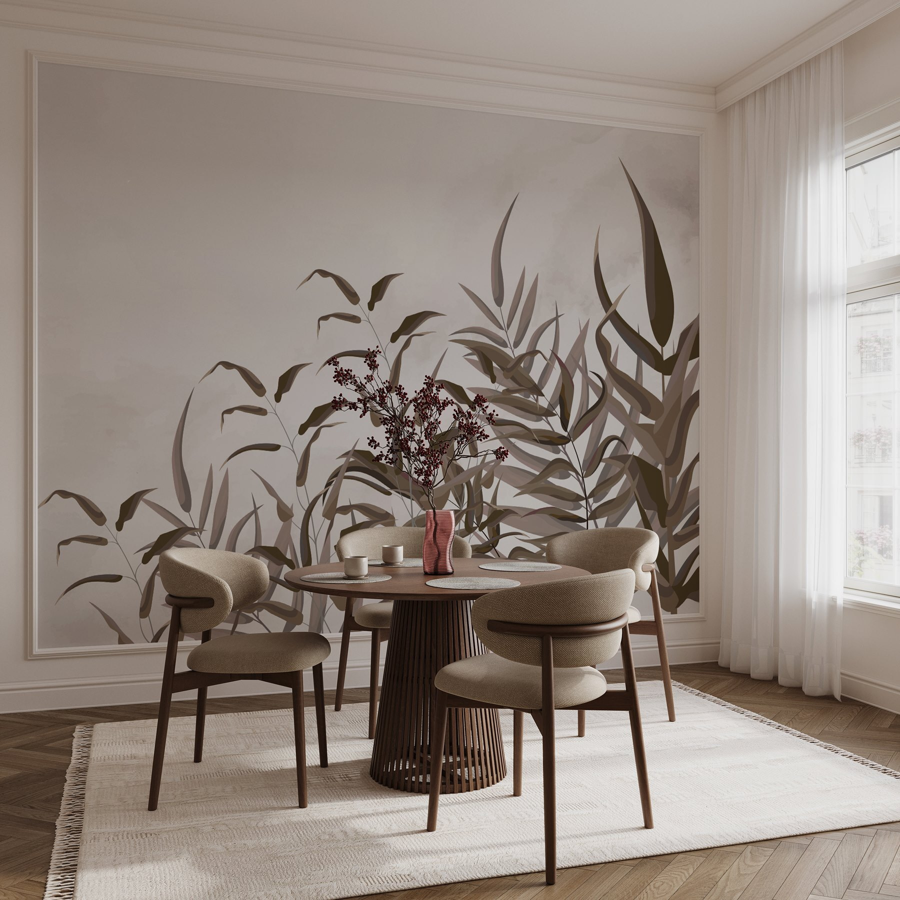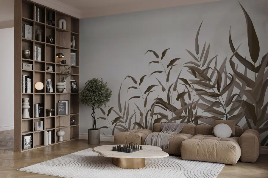 Transforme una pared lisa en un refugio acogedor con el “Mural de pared Planta con hojas marrones”. Imagínese paseando por un bosque bañado por el sol: este mural lleva ese ambiente sereno directamente a su espacio vital. Los marrones suaves y los verdes suaves crean un telón de fondo tranquilo que susurra “relájate aquí”. Imagínate acurrucado con una taza de té mientras la luz del sol se filtra a través de esas siluetas frondosas. Es como el abrazo de la naturaleza sin los bichos del exterior. Perfecto para ese rincón incómodo de la pared o para refrescar el despacho de tu casa. ¿Quién iba a decir que un mural podía tener tanta vida?