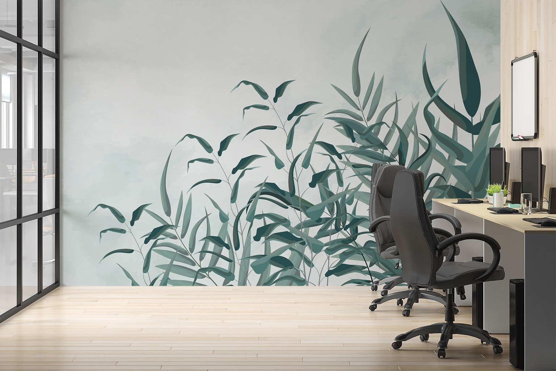 Transforme cualquier espacio con el cautivador mural “Graceful Leaves Dance in Soft Breeze”. Es como traer un trozo de naturaleza a su hogar. Imagínese despertarse con una relajante paleta de verdes, con cada hoja meciéndose al compás de un suave viento. Susurra serenidad a la vez que añade un toque de encanto tropical. Perfecto para esa pared en blanco que necesita desesperadamente un poco de amor o como telón de fondo para un acogedor rincón de lectura. Tus amigos te preguntarán si tienes un jardín botánico escondido. Y no hace falta regarlas. Siéntate, disfruta del ambiente y deja que las hojas hagan su magia.