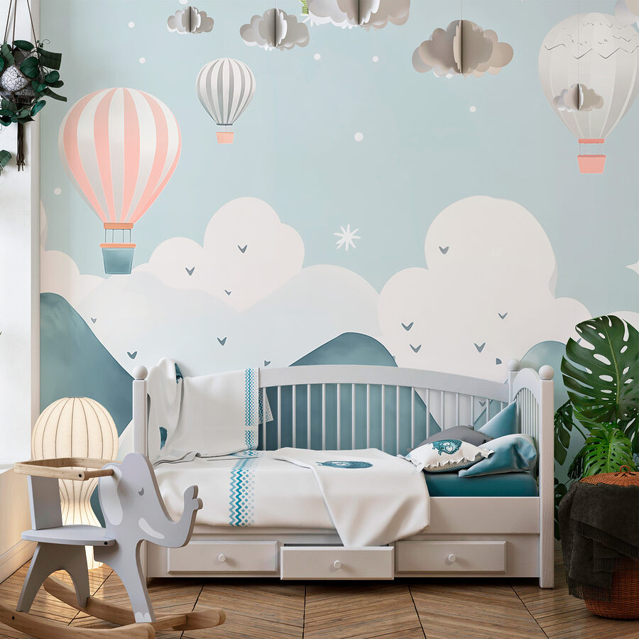Eleve su espacio con este encantador mural que muestra globos aerostáticos flotando graciosamente sobre montañas de ensueño. Imagina despertarte con esta serena escena cada día, ¡es como entrar en una acuarela! Los azules suaves y los toques de color invitan a la calma, por lo que es perfecto para un salón acogedor o un dormitorio tranquilo. Imagínate los domingos perezosos con una taza de café, a la luz del día, mientras sueñas despierto con flotar entre las nubes. Añade un toque de fantasía a tus paredes: ¡puede que te inspire un poco de aventura! Quién sabe, puede que incluso la pared empiece a susurrarte dulces planes de escapada.