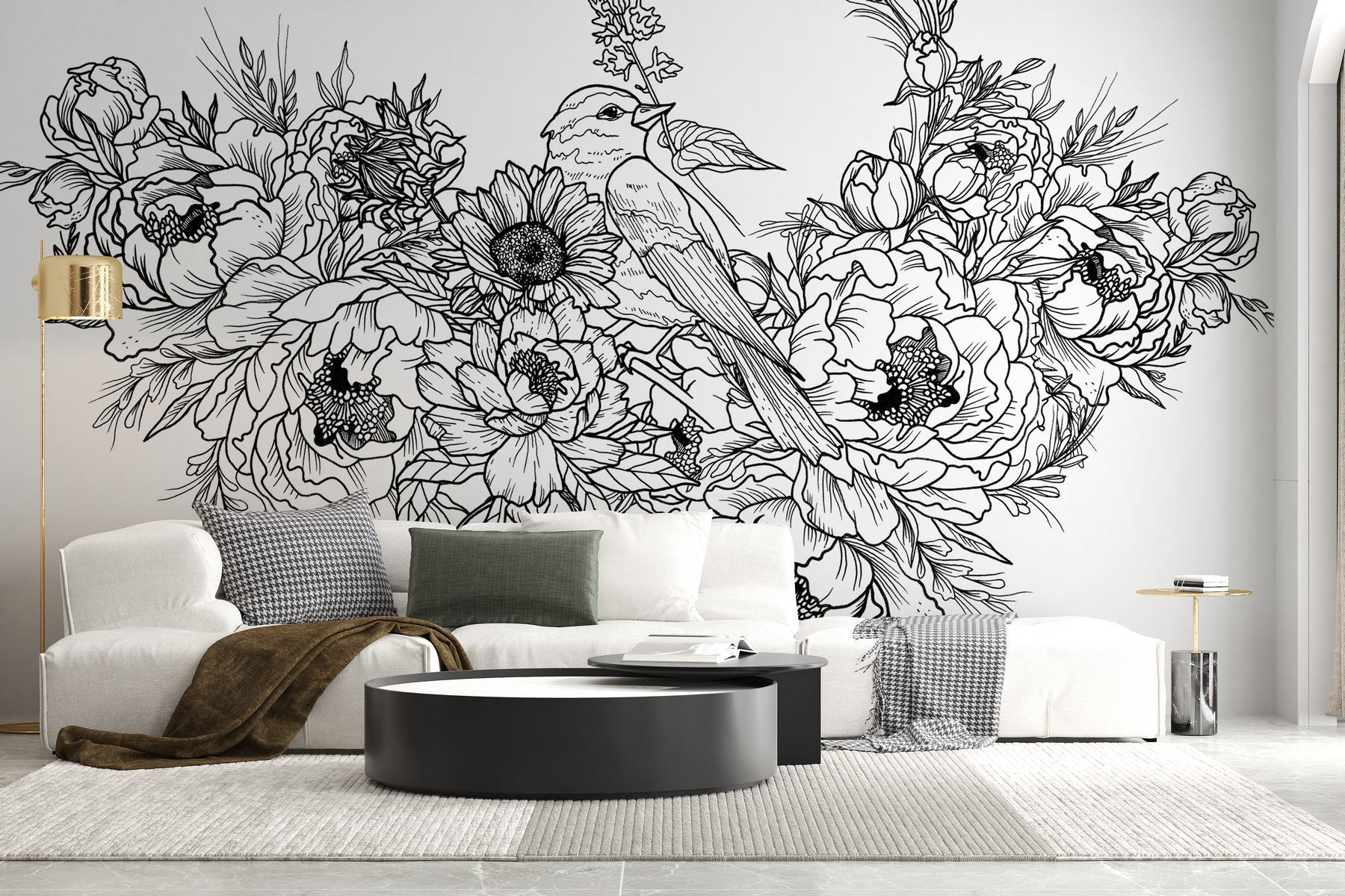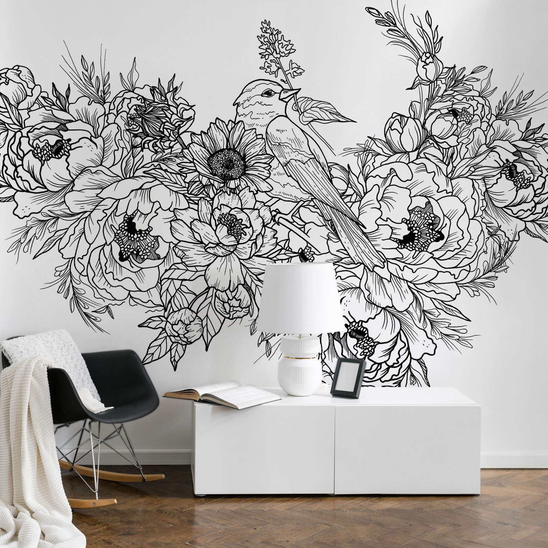 Transforme cualquier espacio con este vibrante mural de pared con un encantador pájaro entre flores. Es como llevar un trozo de naturaleza a su salón. Imagínese tomando un café, contemplando esta encantadora escena, sintiéndose un poco más ligero como si la primavera hubiera decidido fijar su residencia permanente en su pared.