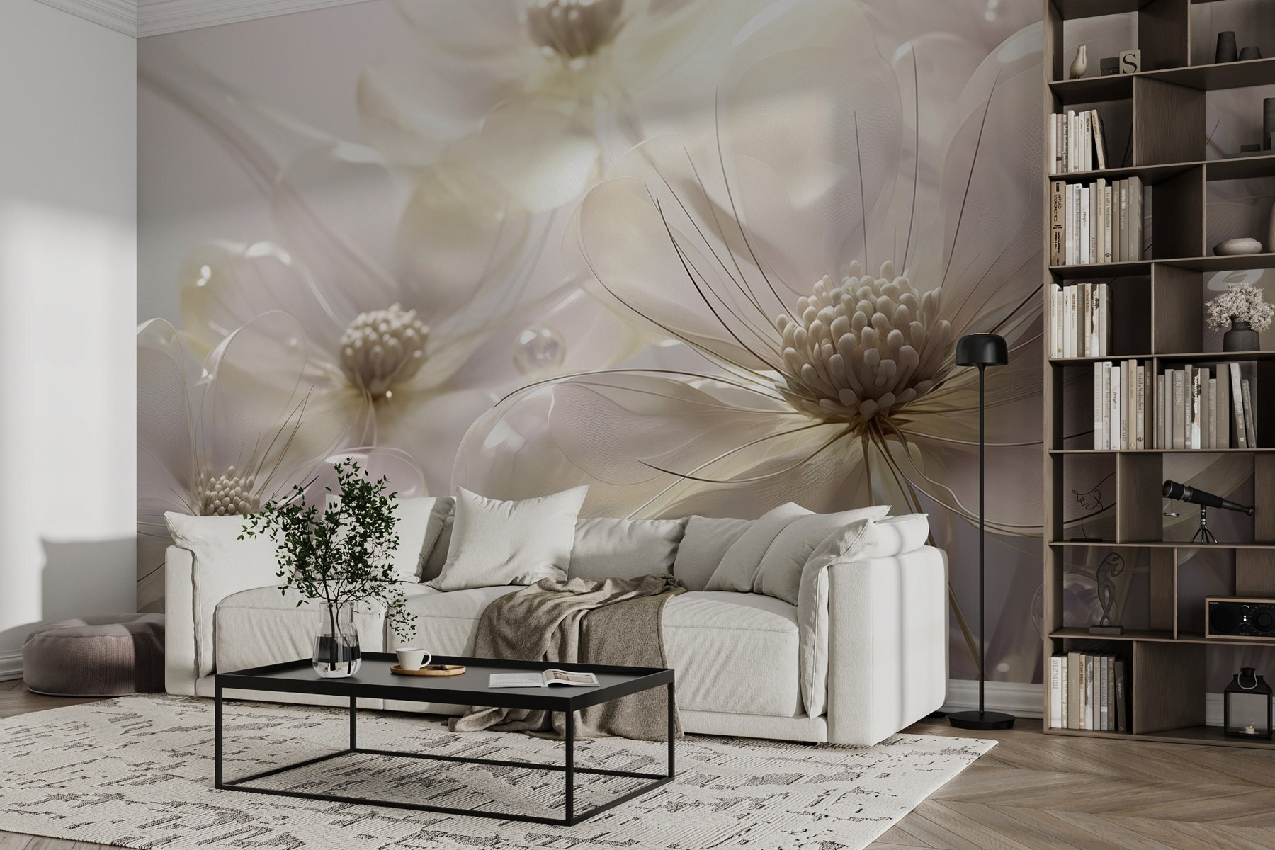 Transforme una pared lisa en un sereno paraíso con este mural de delicadas flores en tonos suaves. Imagina que entras en un jardín de ensueño cada vez que entras en la habitación. Los colores suaves invitan a la paz, por lo que es perfecto para un rincón de lectura acogedor o un dormitorio tranquilo. Amigos y familiares quedarán maravillados con la sensación de frescura y vitalidad del espacio, sin el polen. Es como traer la naturaleza al interior, ¡sin los insectos! Una forma perfecta de añadir un toque de elegancia y calidez a cualquier decoración. ¡Es hora de dejar que esas paredes florezcan!