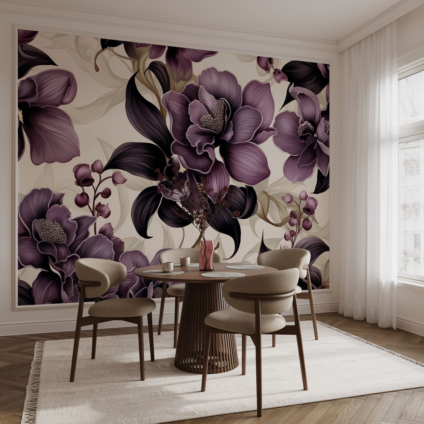 Transforma cualquier habitación en un país de ensueño botánico con este elegante mural floral morado. Es como llevar un exuberante jardín al interior sin el molesto polen. Las espectaculares flores en tonos púrpura intenso y lavanda suave bailan por las paredes, convirtiendo cada mirada en una pequeña escapada a un oasis de serenidad. Imagina que te acurrucas con un libro o recibes a tus amigos rodeado de estas impresionantes flores… ¡qué vibración! Perfecto para salones, dormitorios o incluso un pequeño rincón con encanto, este mural promete convertir los momentos cotidianos en un festín para los ojos. Así que, ¿por qué no dejar que tus paredes florezcan?