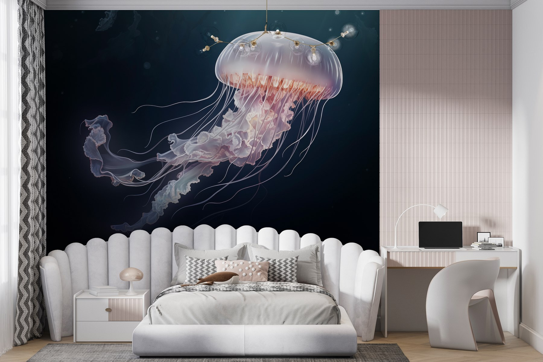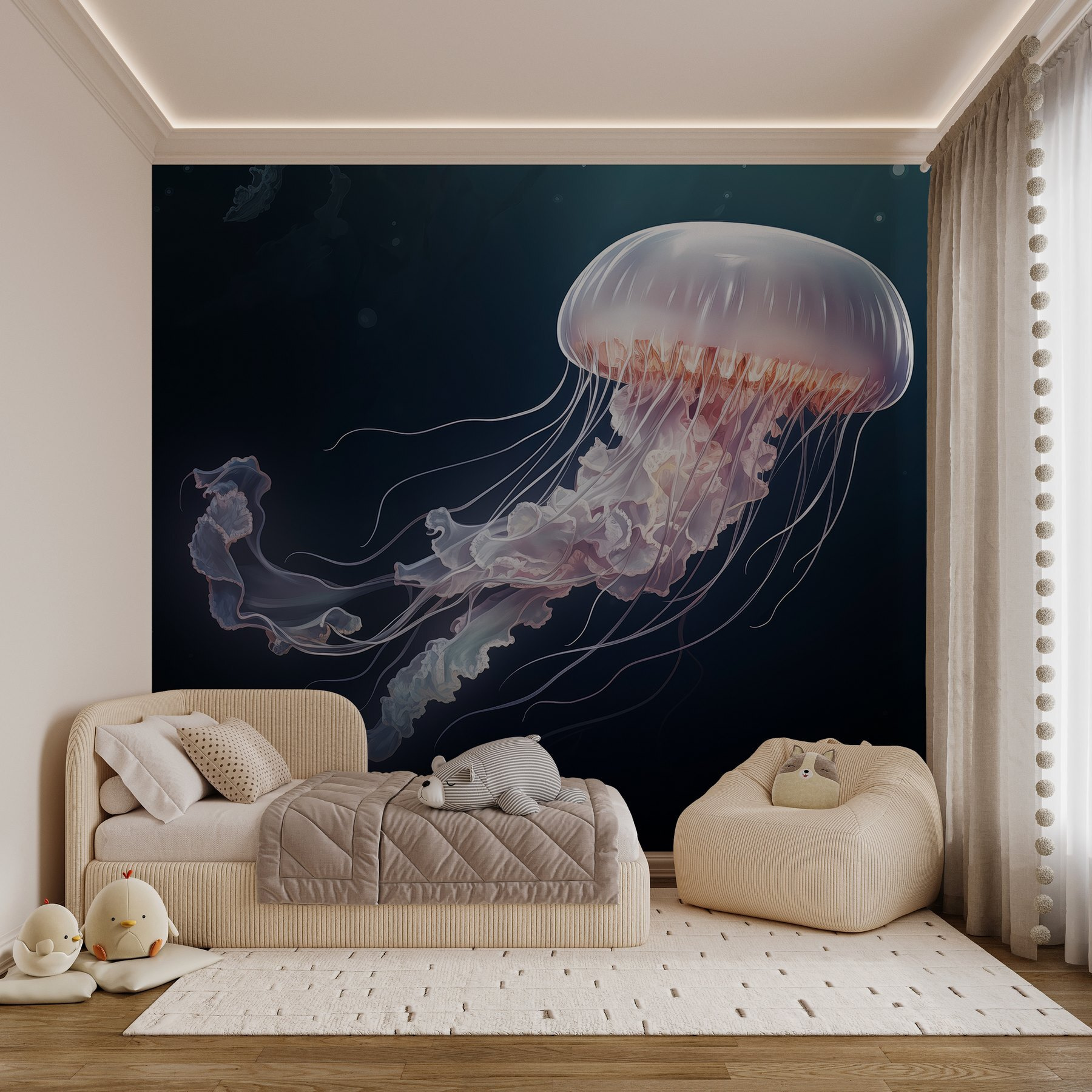 Sumérgete en un mar de tranquilidad con este impresionante mural de medusas. Imagínatelo colgado en un rincón acogedor o en el salón, creando un ambiente relajante que recuerda a los días de playa. Los colores fluyen como las olas del mar, capturando sutilmente esa sensación de ensueño bajo el agua. Imagínese a sus amigos parándose en seco, con los ojos muy abiertos, maravillados por su delicada gracia. Este mural no sólo decora una pared, sino que te transporta a un sereno mundo submarino. Es como tener un trozo del océano en casa, perfecto para soñar despierto o planear su próxima escapada junto al mar. ¿Quién iba a decir que el océano podía tener tan buen aspecto?