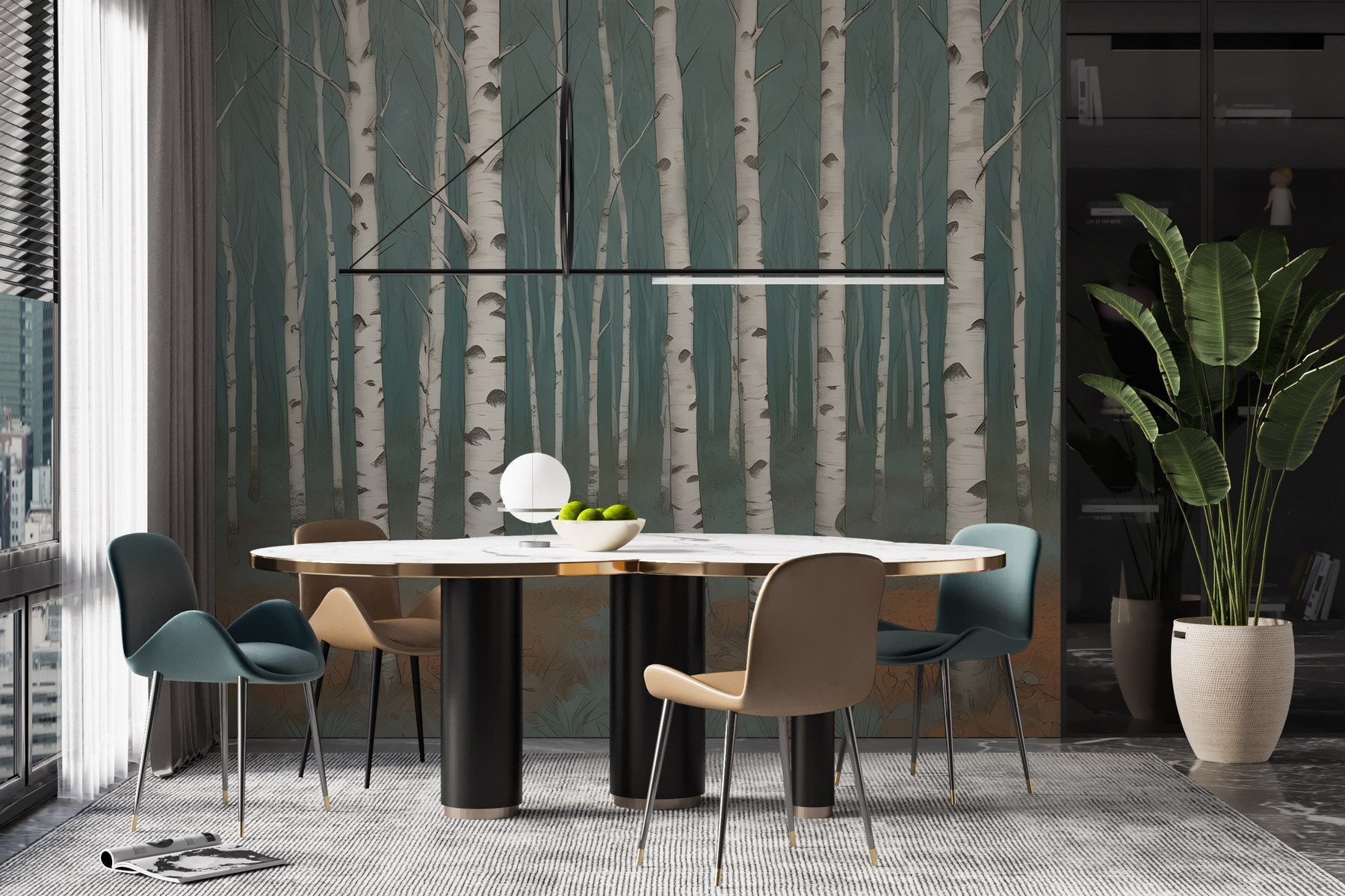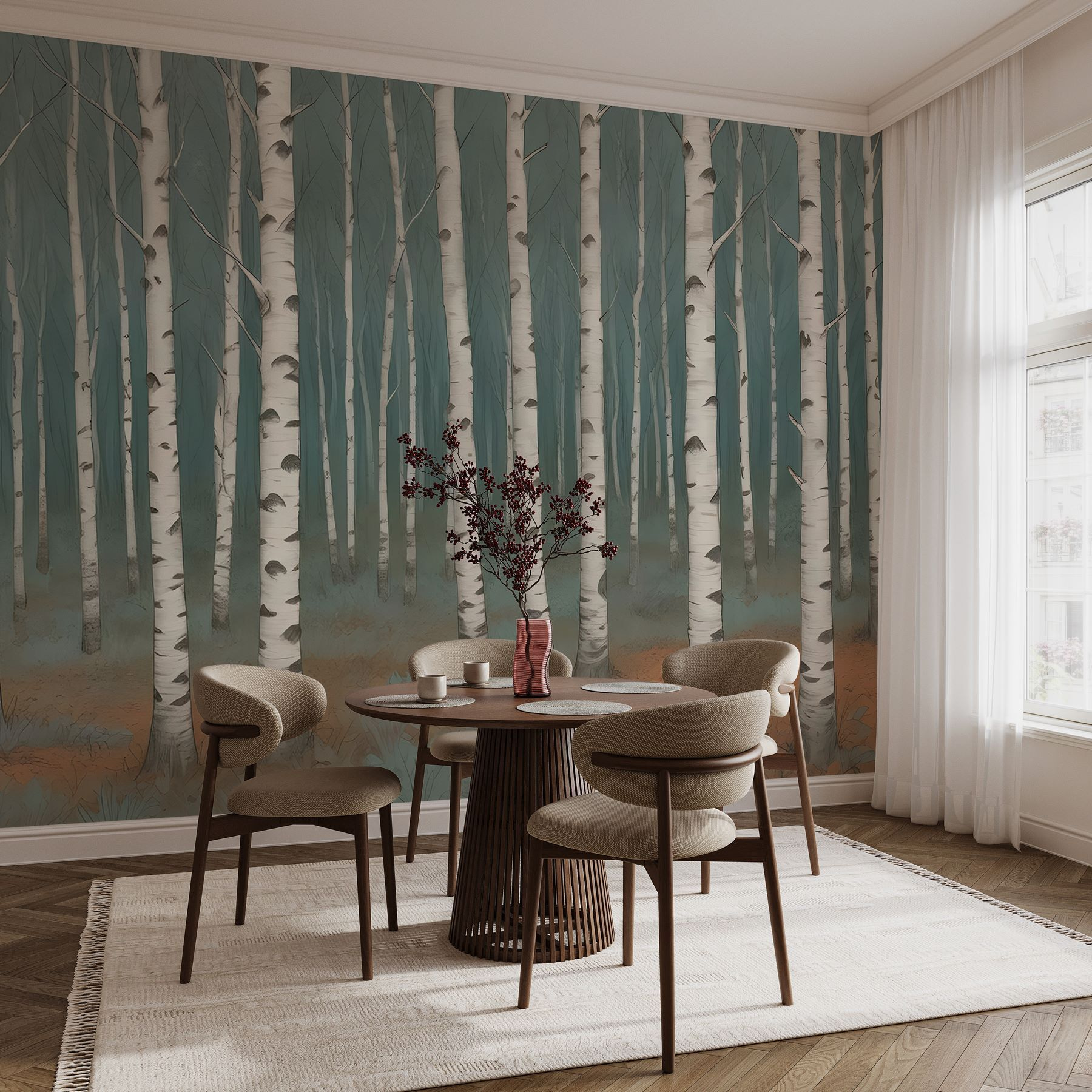 Adéntrese en un bosque sereno cada vez que mire este impresionante mural de pared. Con una arboleda de elegantes abedules, trae el ambiente pacífico de la naturaleza directamente a su hogar. Imagínese acurrucándose con un buen libro, sintiéndose como en un acogedor refugio en el bosque. Los colores suaves crean una atmósfera relajante, perfecta para transformar cualquier espacio, desde un salón hasta un rincón de meditación.