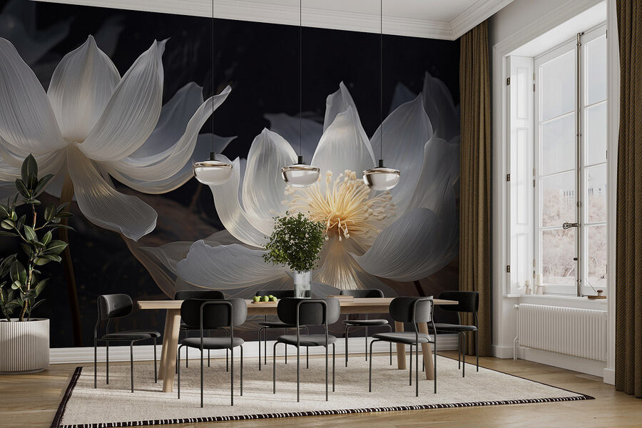 Transforme cualquier habitación en un oasis de serenidad con el mural de pared “Delicate Blooms in Soft Illumination”. Imagínese entrar en un espacio que parece un tranquilo jardín, donde elegantes flores se bañan en una suave luz, susurrando serenidad a su alma. Es como un soplo de aire fresco para sus paredes. Imagínatelo en un rincón de lectura acogedor o en una cocina luminosa: sutil pero llamativo, atrae las miradas sin llamar la atención. Perfecto para aquellos que aprecian la elegancia de la naturaleza, este mural puede hacerle sentir como si estuviera descansando en un refugio botánico todos los días. ¿A quién no le gustaría despertarse así?