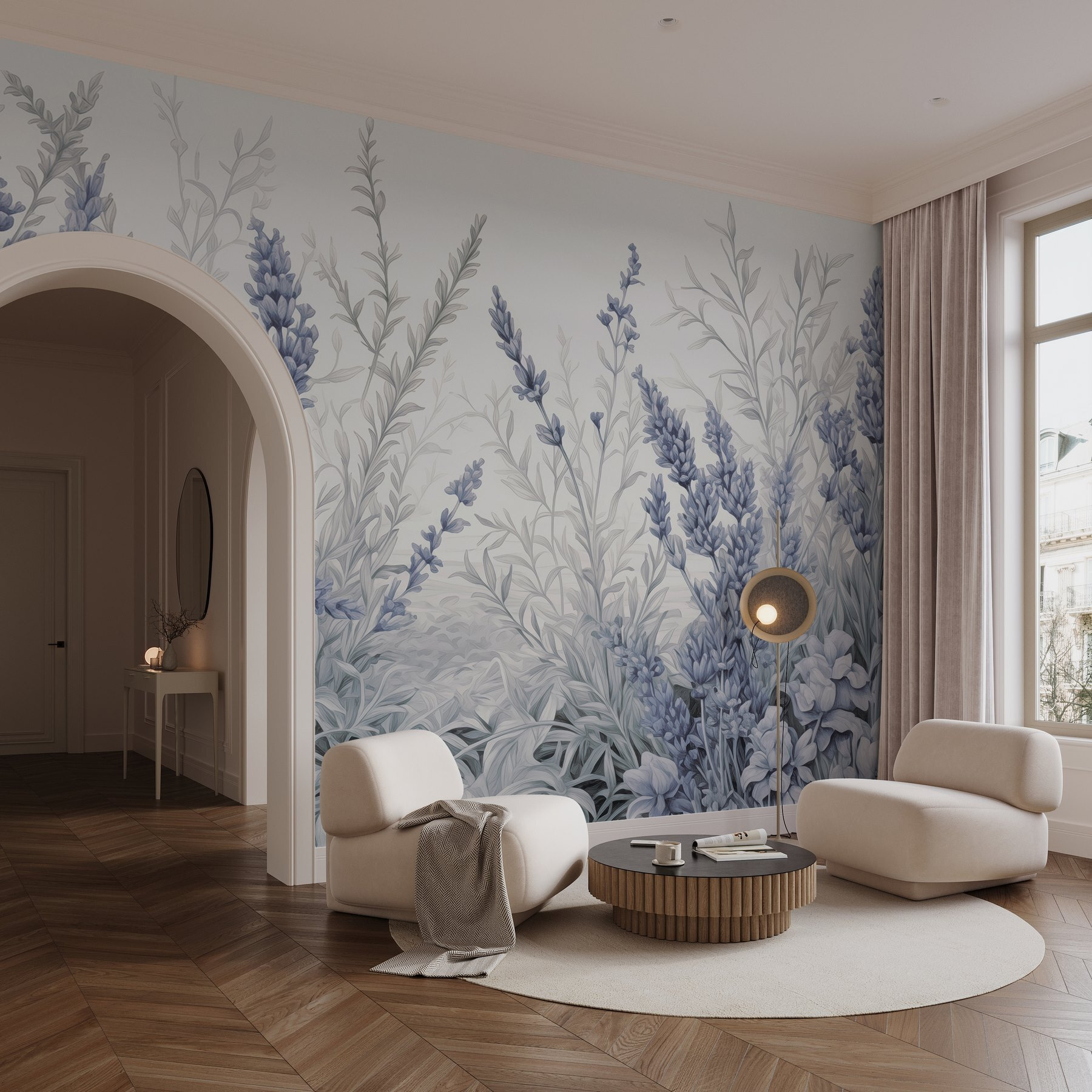 Transforma tu espacio con la relajante belleza de “Delicate Blues in Floral Harmony”. Imagina entrar en un jardín de ensueño cada día, lleno de suave lavanda y suaves flores que sólo susurran “relájate”. Este mural aporta un toque de naturaleza al interior, perfecto para un rincón acogedor o un sereno dormitorio. Los tonos calmantes pueden convertir incluso el día más caótico en una experiencia tranquila. Imagínese los domingos por la mañana tomando café mientras estas elegantes flores bailan en sus paredes; en serio, es como unas minivacaciones en casa. Deja que cada mirada te recuerde el relajante abrazo de la naturaleza.