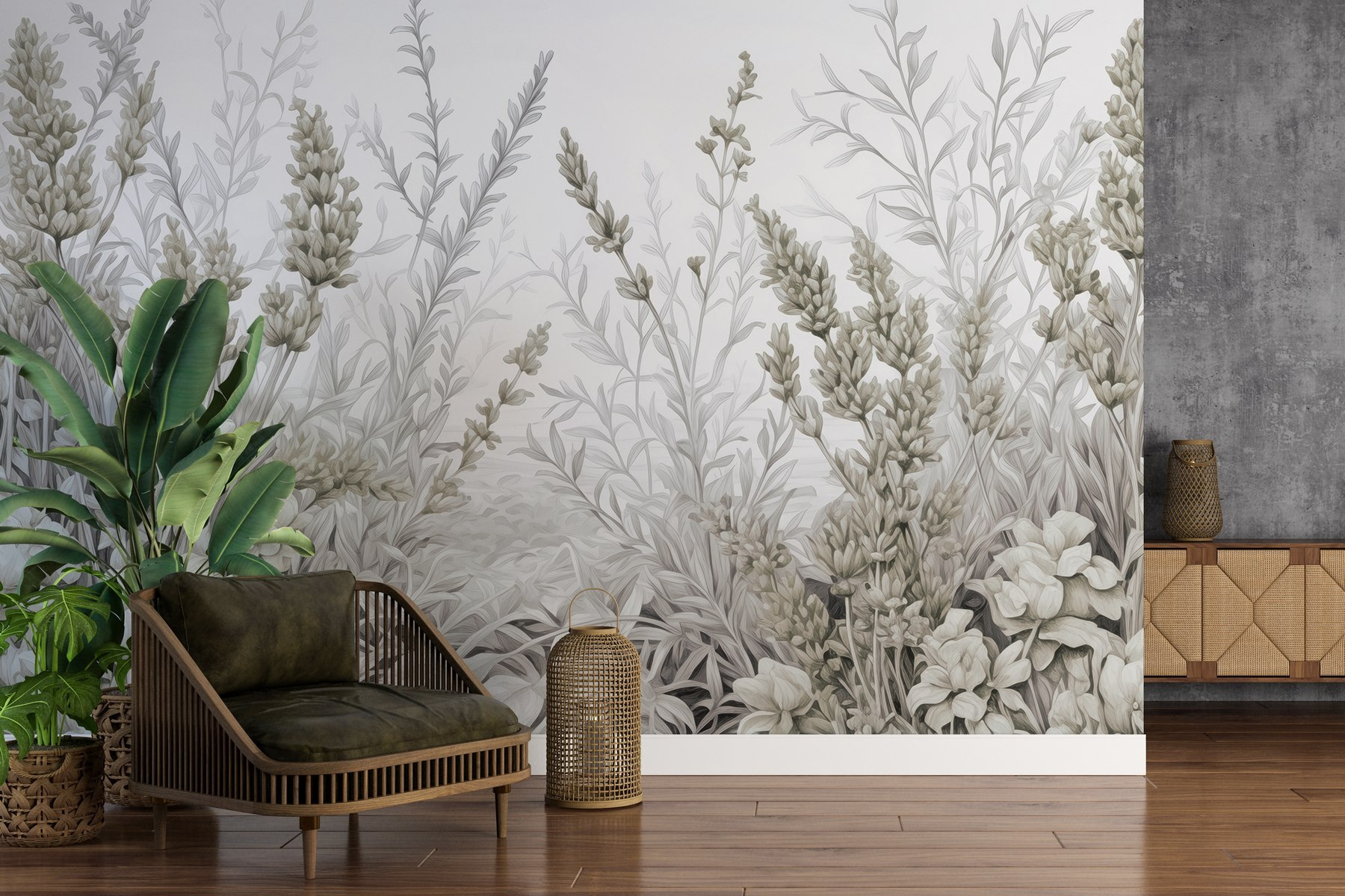 Transforma cualquier espacio en una escapada tranquila con este impresionante mural. Con una serena disposición botánica, susurra elegancia en tonos apagados, aportando un toque de naturaleza al interior. Imagina llegar a casa después de un largo día, tumbarte en el sofá y ser recibido por la suave lavanda y la delicada vegetación. Es como un abrazo tranquilizador para tus paredes. Perfecto para un rincón de lectura acogedor o un dormitorio tranquilo, este mural crea un ambiente de relajación. Piensa que no es necesario regar ni podar. Añada un toque zen a su decoración y deje que sus paredes hablen por usted.