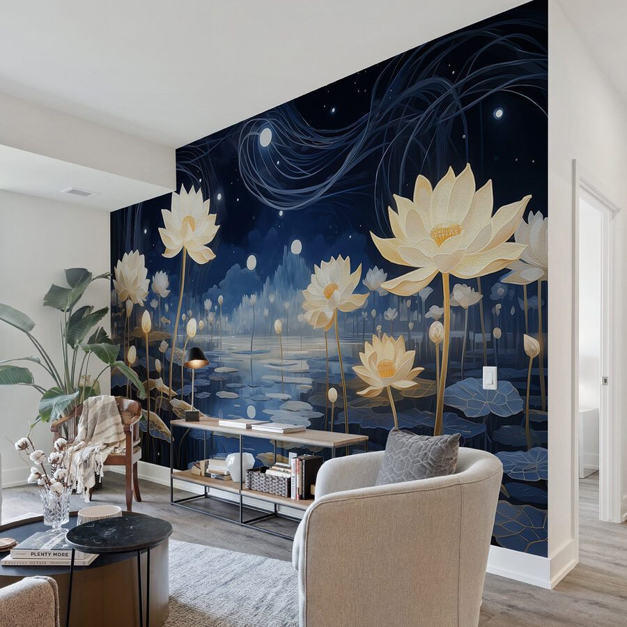 Transforme su espacio con este encantador mural, donde las flores florecen serenamente en un estanque de ensueño. Imagínese entrar en una escapada tranquila todos los días, esos delicados pétalos y el agua brillante crean una atmósfera que es a la vez calmante y edificante. Perfecto para un salón o un acogedor rincón de lectura, este diseño te invita a hacer una pausa y respirar, casi como si las flores te susurraran dulces secretos. Tus amigos te preguntarán dónde has encontrado una pieza tan impresionante, e incluso puede que te sientas inspirado para organizar una fiesta del té o una acogedora noche de cine sólo para enseñarla. Una adición encantadora que puede hacer que cualquier pared resalte con encanto y personalidad.