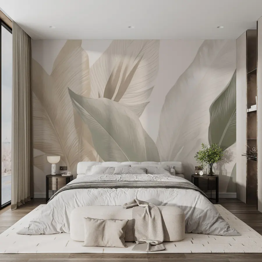 Transformar un espacio con el mural “Hojas suaves en tonos neutros” es como invitar a una suave brisa al interior. Imagínese que entra en una habitación donde el follaje le envuelve en calidez. La relajante paleta de verdes apagados y marrones suaves crea un escape sereno, perfecto para soñar despierto o para los rituales del café matutino. Es como tener un acogedor bosque en casa, ¡pero sin bichos! Ya sea en un moderno salón o en un apacible dormitorio, este mural susurra relajación. Los pequeños detalles, como las suaves texturas de las hojas, te atraen. Imagínate acurrucado con un libro, rodeado de esta belleza inspirada en la naturaleza. ¿Quién no se sentiría un poco más zen?