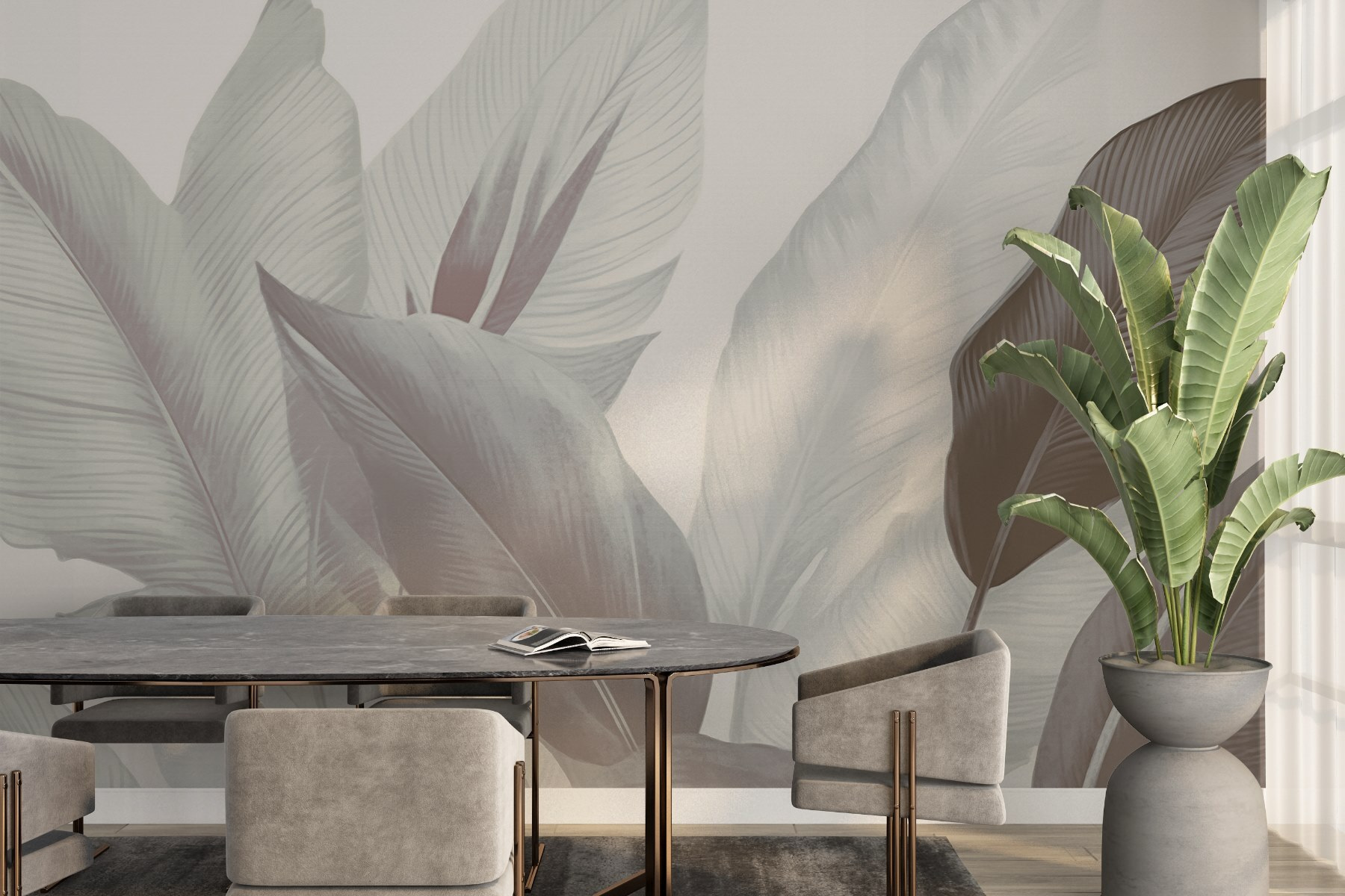 Transforma cualquier habitación en un refugio de serenidad con el mural “Hojas suaves en tonos suaves”. Imagínatelo: tardes tranquilas tomando el té, rodeado del ritmo calmante de la naturaleza, sin salir de casa. Los tonos suaves y el delicado follaje prácticamente susurran relajación. Ya sea en un acogedor rincón de lectura o en una vibrante sala de estar, este mural aporta un toque de estilo tropical que equilibra sofisticación y calidez. Es como invitar a un exuberante jardín directamente a sus paredes. Imagínese las conversaciones y la serenidad que inspirará. ¿Quién no querría eso?