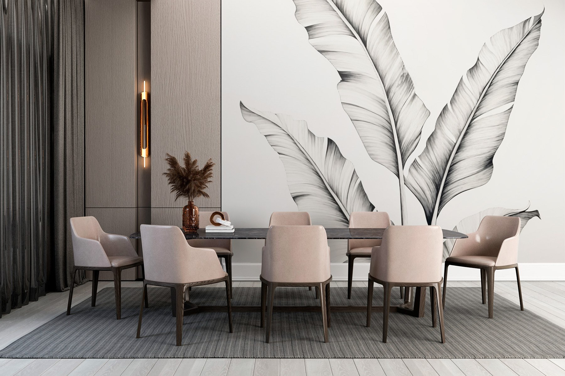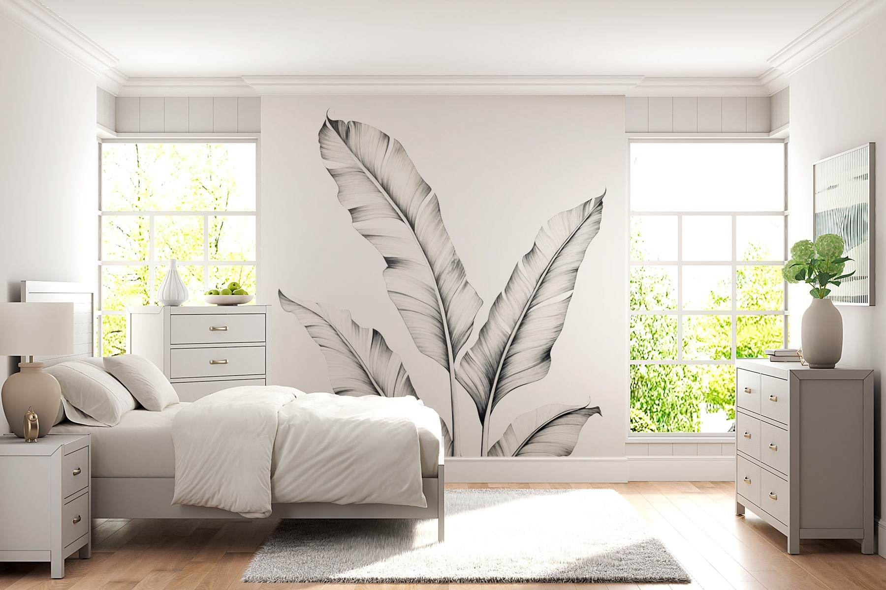Transforma cualquier habitación en una escapada serena con este mural de pared con impresionantes dibujos de plantas. Imagina entrar en tu espacio y sentirte como si hubieras entrado en un paraíso tropical, sin levantarte del sofá, por supuesto. Las elegantes líneas de las hojas se mecen suavemente, creando una sensación de calma y conexión con la naturaleza.